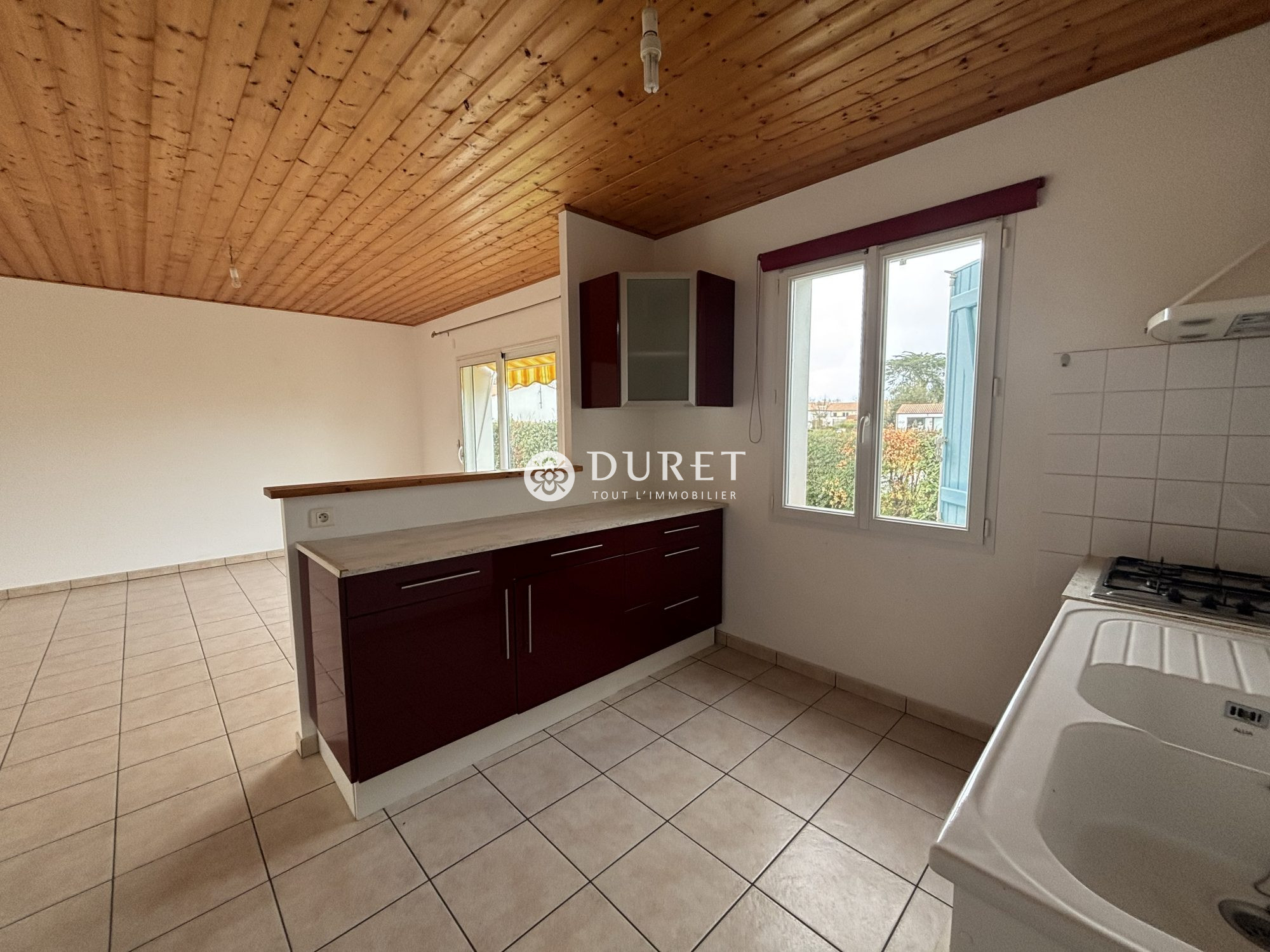 A louer, maison entièrement meublée située à 400m du plein centre de Challans, comprenant une pièce de vie chaleureuse avec poêle à granulés, une chambre avec rangement, une cuisine aménagée et entièrement équipée (réfrigérateur, four, plaques de cuisson induc...
