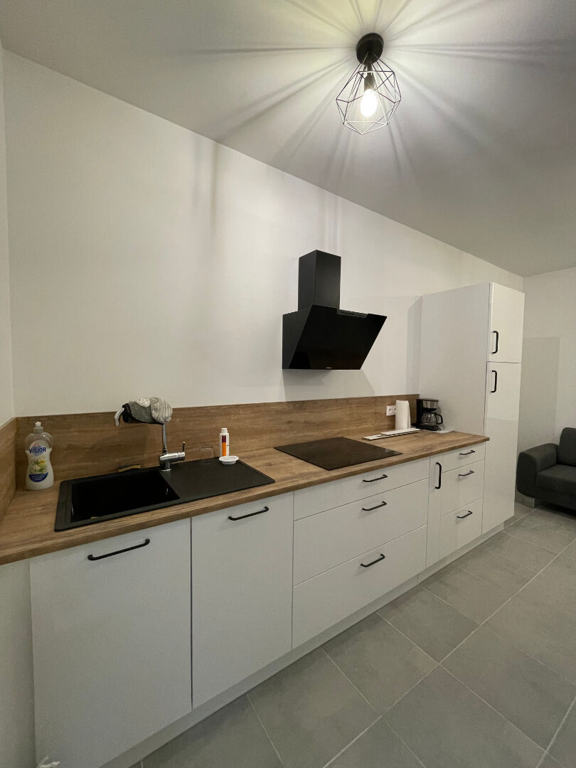 Proche des facultés paloises, studio meublé et équipé composé d'une pièce principale, une kitchenette séparée (avec réfrigérateur TOP, hotte, et plaque de cuisson) et une salle d'eau avec un WC