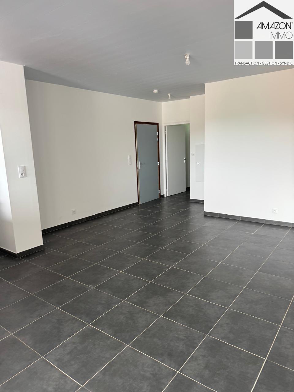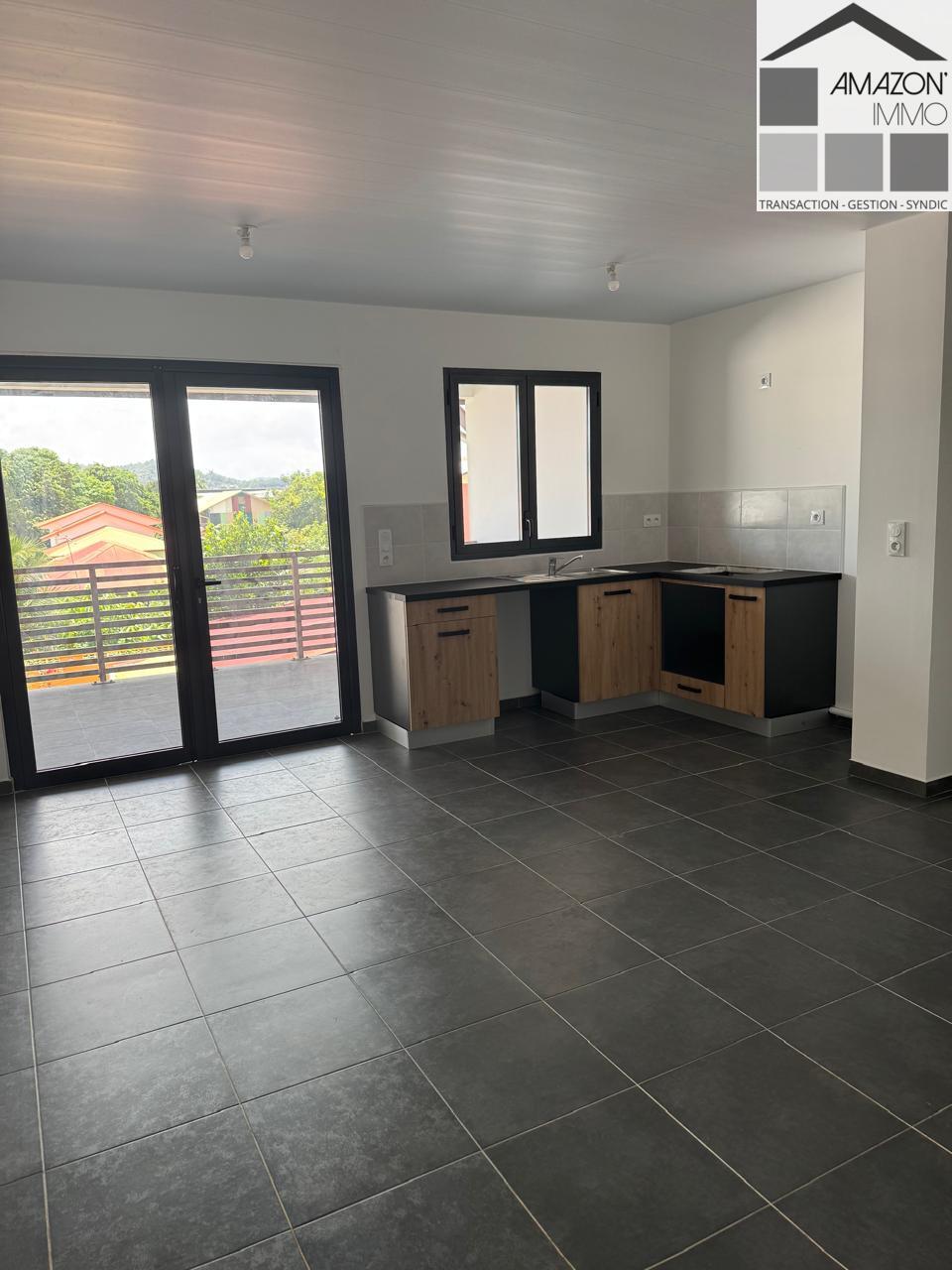 À louer secteur Ibiscus à CAYENNE un grand T2 récent, composé d'une chambre climatisée, un grand séjour/cuisine aménagée, une salle d'eau avec WC et une terrasse.