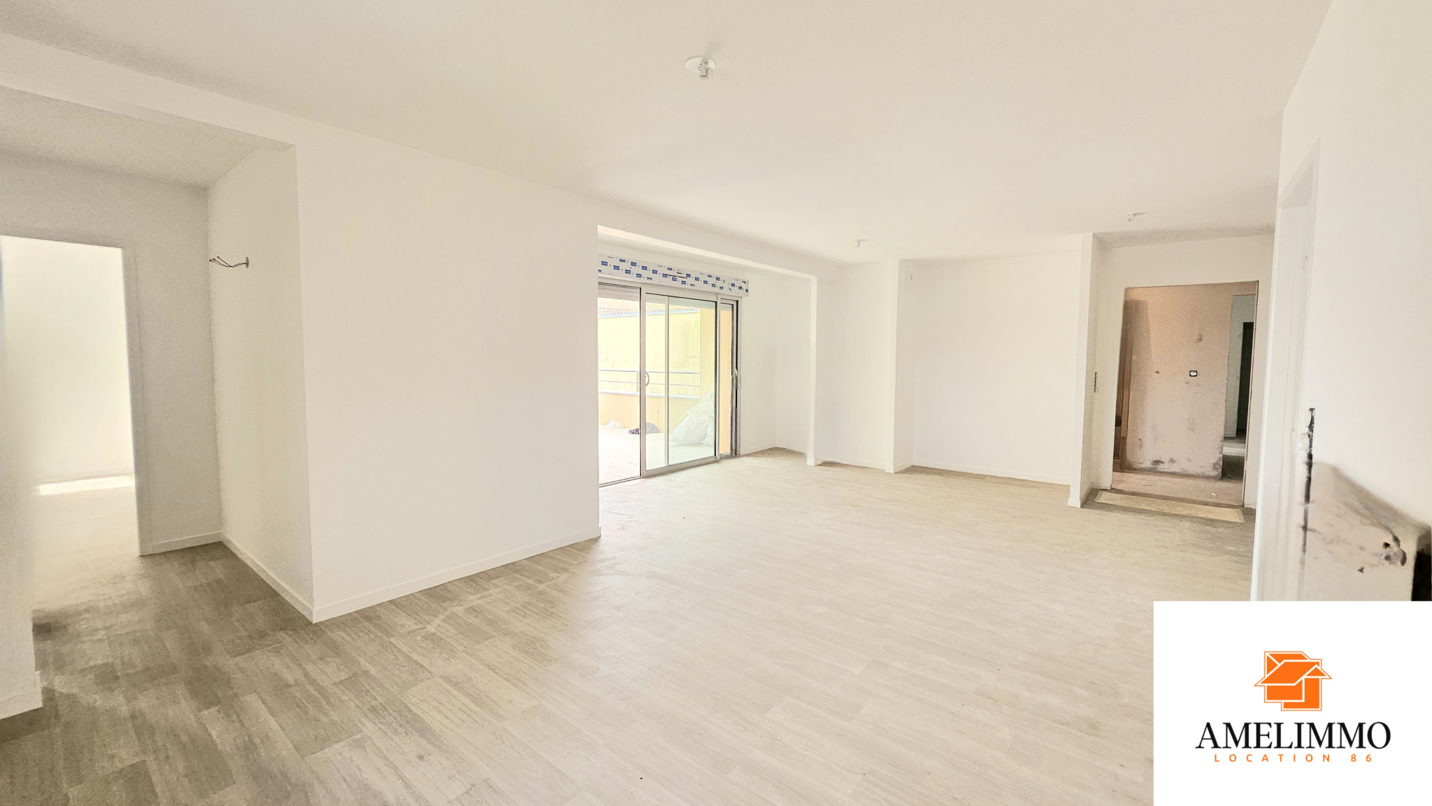 À louer, spacieux T4 de 80 m2 avec terrasse 18 m2 dans la résidence Verlaine à Poitiers. Proche Leclerc, CHU et Polyclinique, avec transports en commun au pied de la résidence.