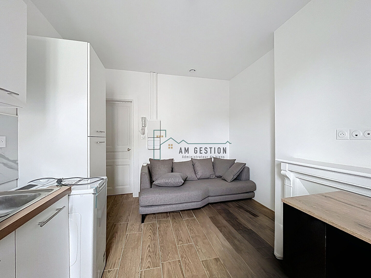 - d'une petite cuisine aménagée et équipée (frigo, plaque, hotte et ...