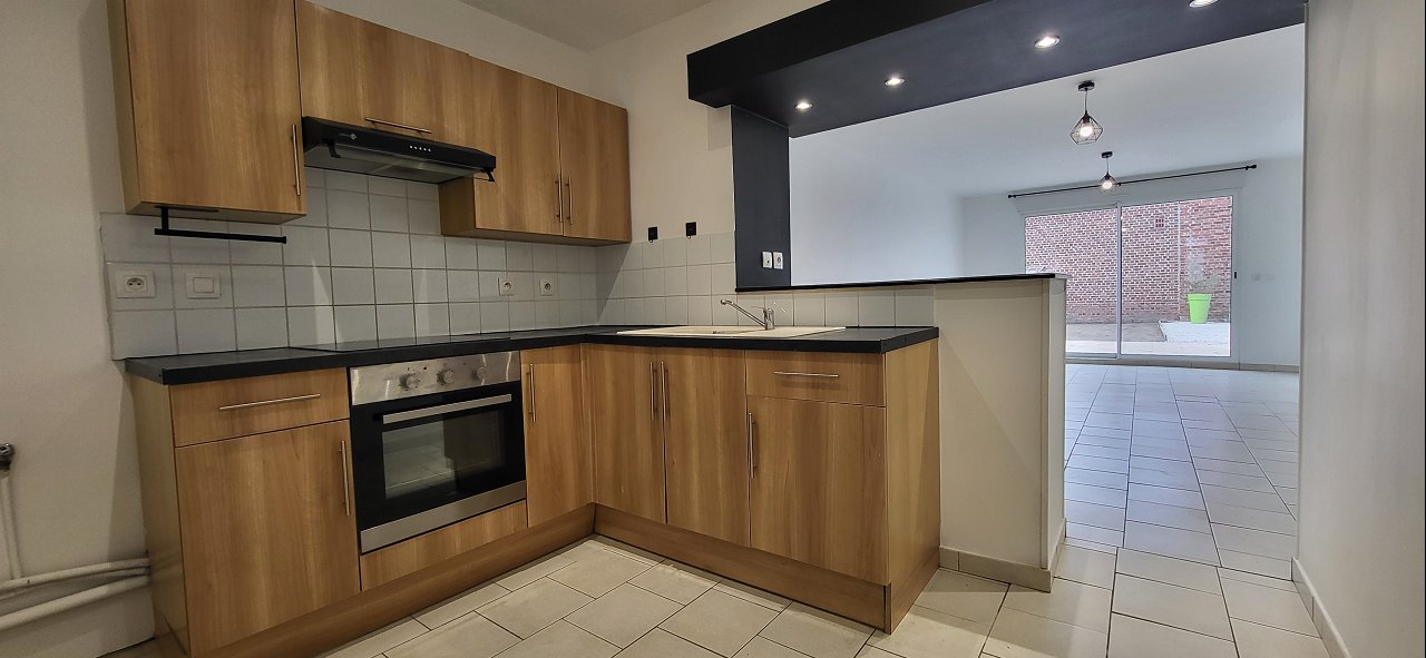 BETHUNE - Proximité gare, maison rénovée avec jardin clos et terrasse, comprenant salon séjour, cuisine aménagée, 2 chambres, 2 bureaux, salle de bains. Libre le 18.03.2026<BR>Surface habitable : 105,10 m2<BR>Loyer : 730? par mois charges comprises...