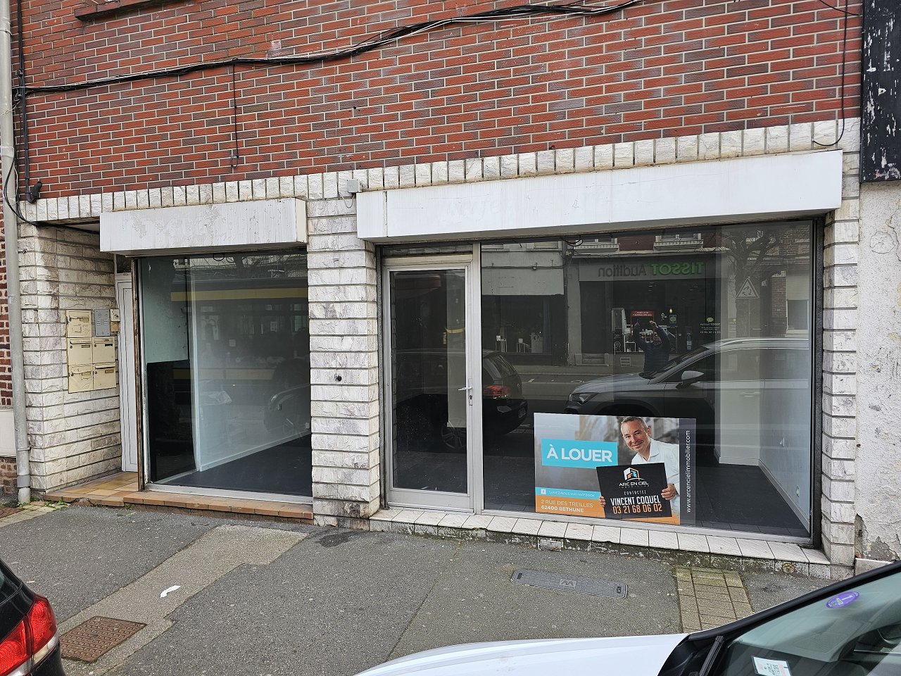 BETHUNE<BR>En angle de rues, Local commercial ou professionnel de 50 m2 environ<BR>Loyer mensuel : 700 ? HT<BR>Provision mensuelle eau et taxe foncière : 95 ? HT<BR><BR>Les informations sur les risques auxquels ce bien est exposé ...