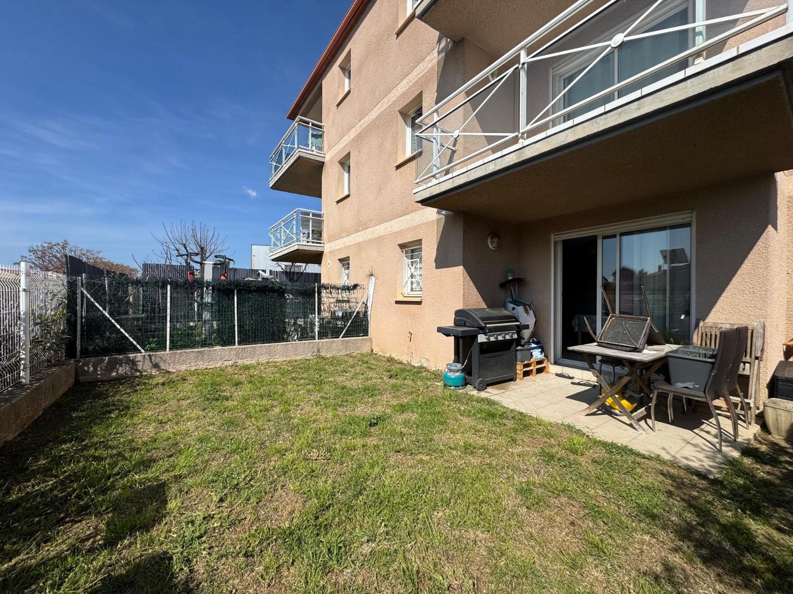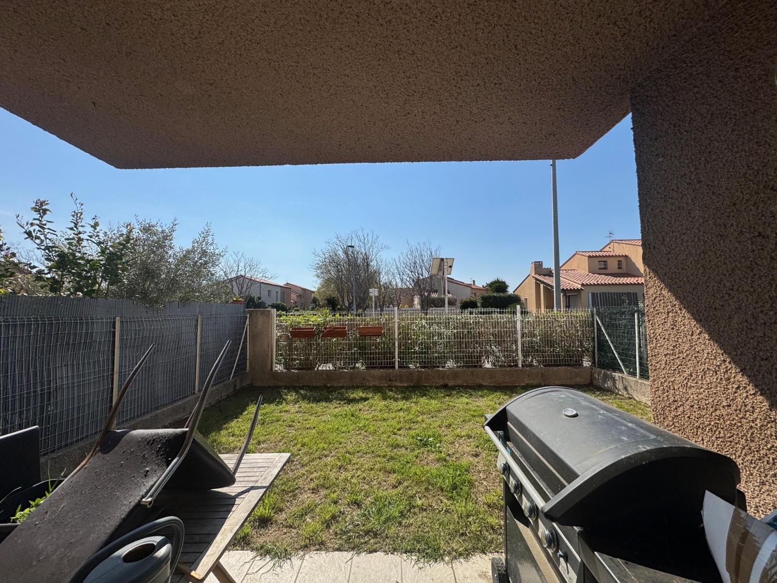 SALEILLES - Dans une résidence récente et sécurisée, bel appartement de 48 m² en rez de jardin avec place de stationnement, séjour avec un coin cuisine aménagée, chambre avec placard, salle d'eau. Terrasse et jardin ensoleillés. Proche de toutes commodité...