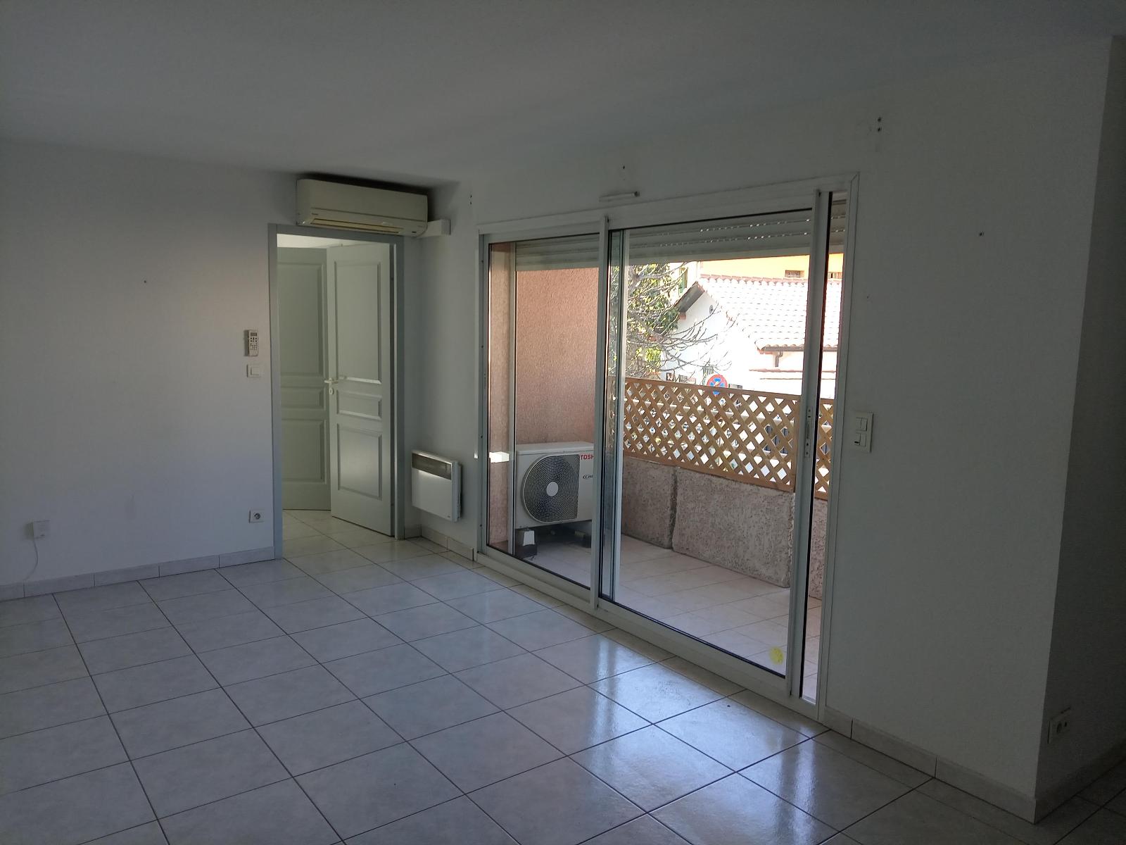 PERPIGNAN SAINT MARTIN - Résidence Emporda avec ascenseur, bel appartement T2 lumineux de 47 m², grand séjour avec coin cuisine équipée et aménagée, chambre avec placard, salle d'eau. Terrasse. Proche des commerces et commodités.