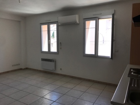 SALEILLES - APPARTEMENT F2 PROCHE COMMERCES - SALEILLES - Proche de l'église et de La Poste, dans un petit immeuble, au calme, au 1er étage, appartement entièrement repeint, séjour / cuisine équipée avec climatisation, 2 chambres, salle d'eau. Statio...