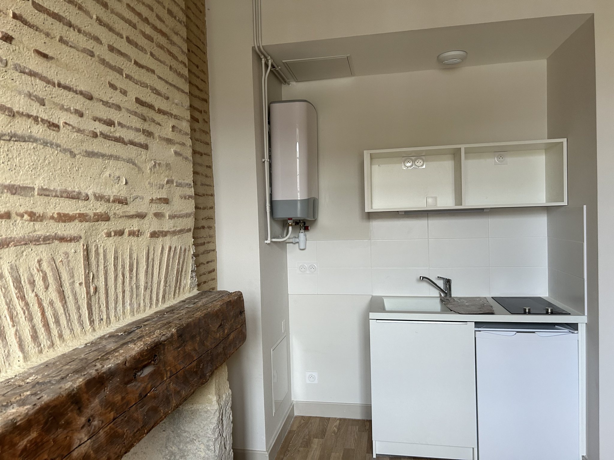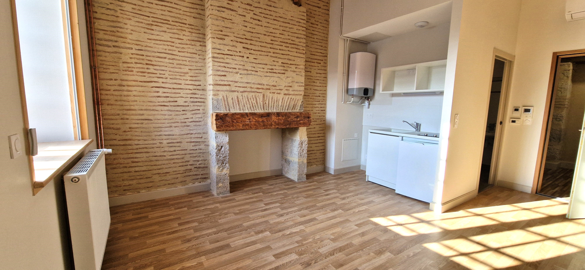 Situé au coeur de la commune d'Aiguillon, proche du lycée, ce studio de 23 m2 se compose d'une entrée, d'une pièce de vie avec coin cuisine semi-équpée (plaque de cuisson, frigo Top), d'une salle d'eau avec WC.
