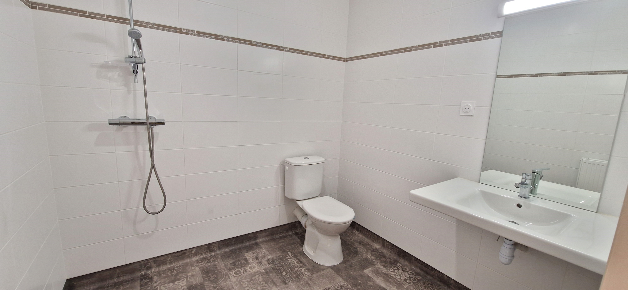 Proche centre ville d'Aiguillon, ce studio situé au rez-de-chaussée d'un immeuble offrant 5 logements, il se compose d'une entrée , une cuisine semi-équipée (frigo, plaque, hotte), une pièce de vie, un wc séparé, une salle de bains.