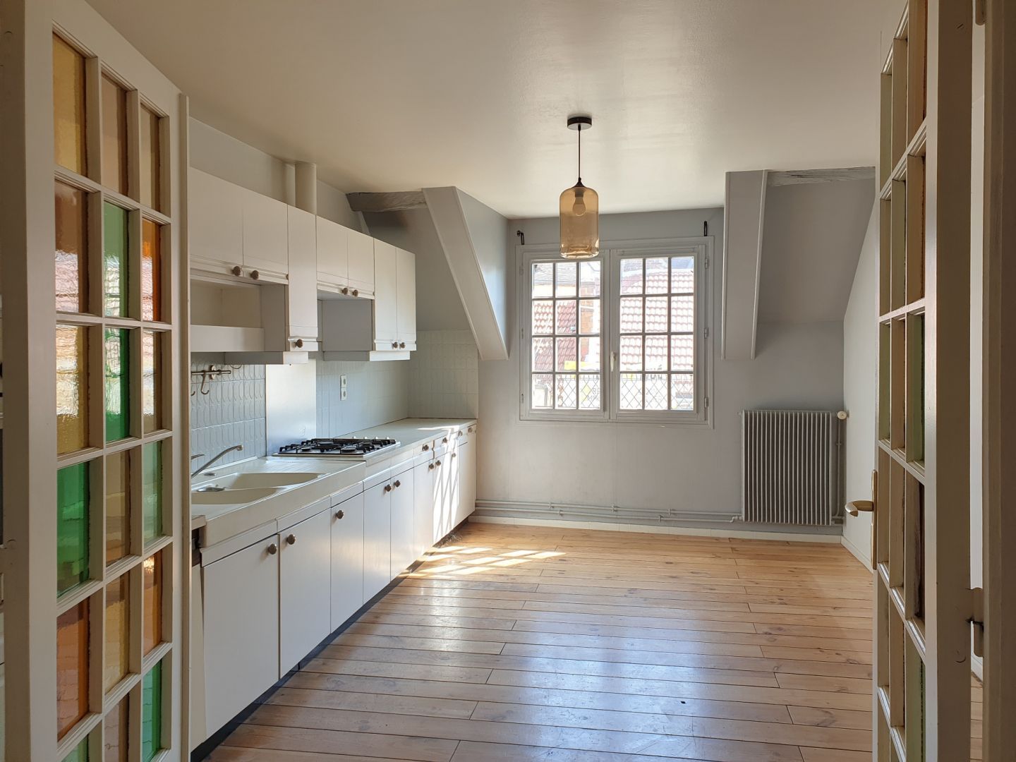 Un appartement de type F4 situé dans un secteur calme, comprenant : une entrée avec placards, un vaste séjour/salon avec mezzanine apportant cachet et luminosité, une cuisine aménagée et semi-équipée, deux chambres, une salle de bains, WC.