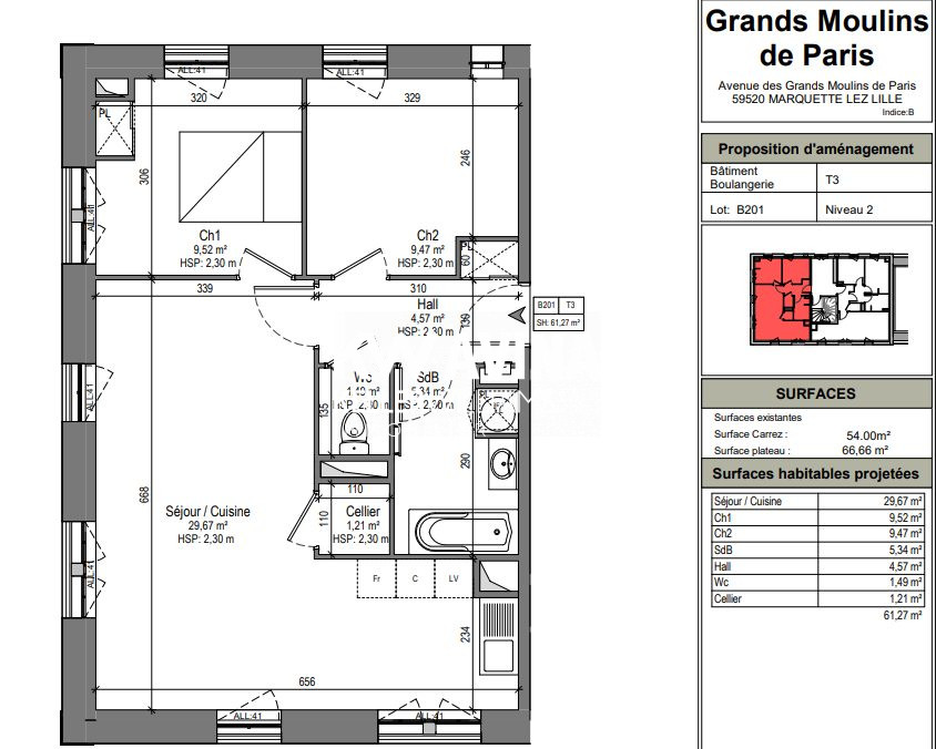 L'agence MGLJ vous propose à la location un appartement de type 3 de 60,33m2 sur la commune de Marquette Lez Lille.