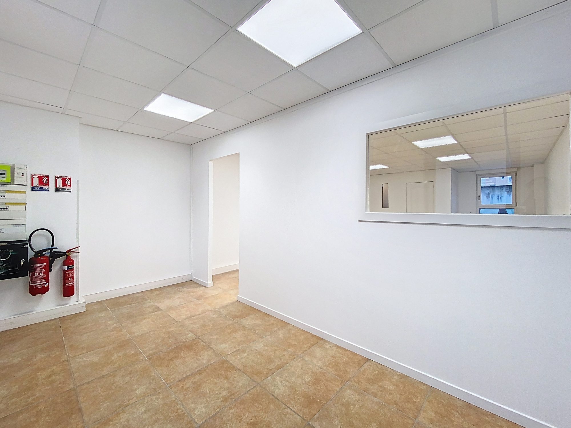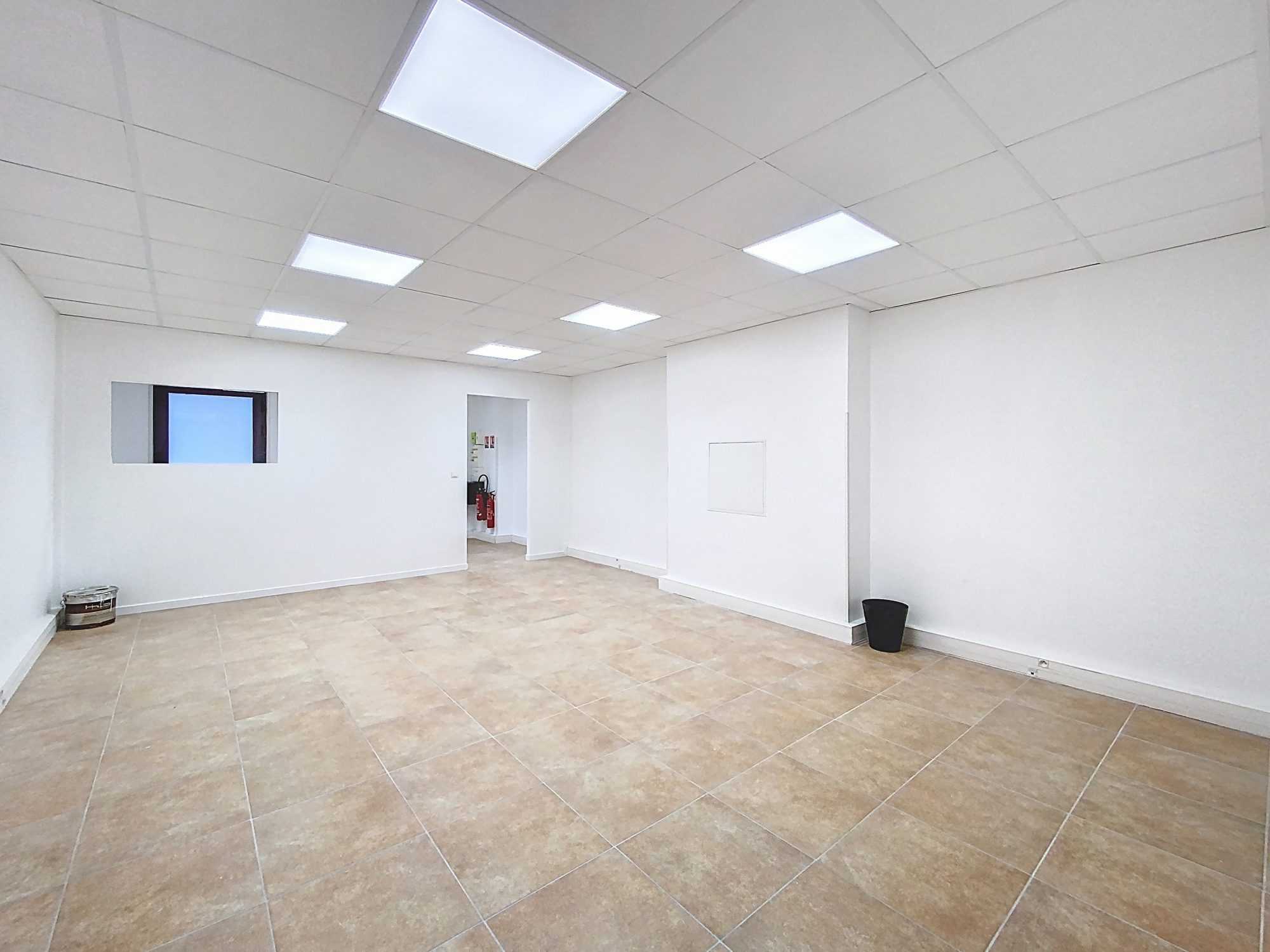 Au rez-de-chaussée : un bureau de 50 m² avec WC et lave-mains.