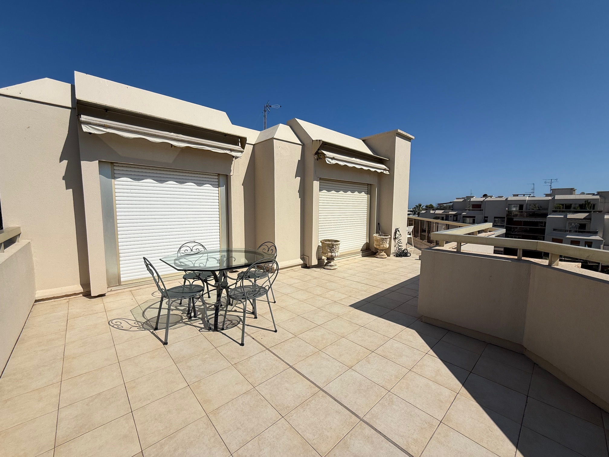 Dans le quartier du Grande Bretagne, 70 Bd Sadi Carnot, dans une résidence fermée et sécurisée, agréable et lumineux villa toit de type 2/3 pièces de 62.06 m2 certifiés meublée, sis 6 ème et dernier étage bénéficiant d'une vaste terrasse de 42 m2 storée e...