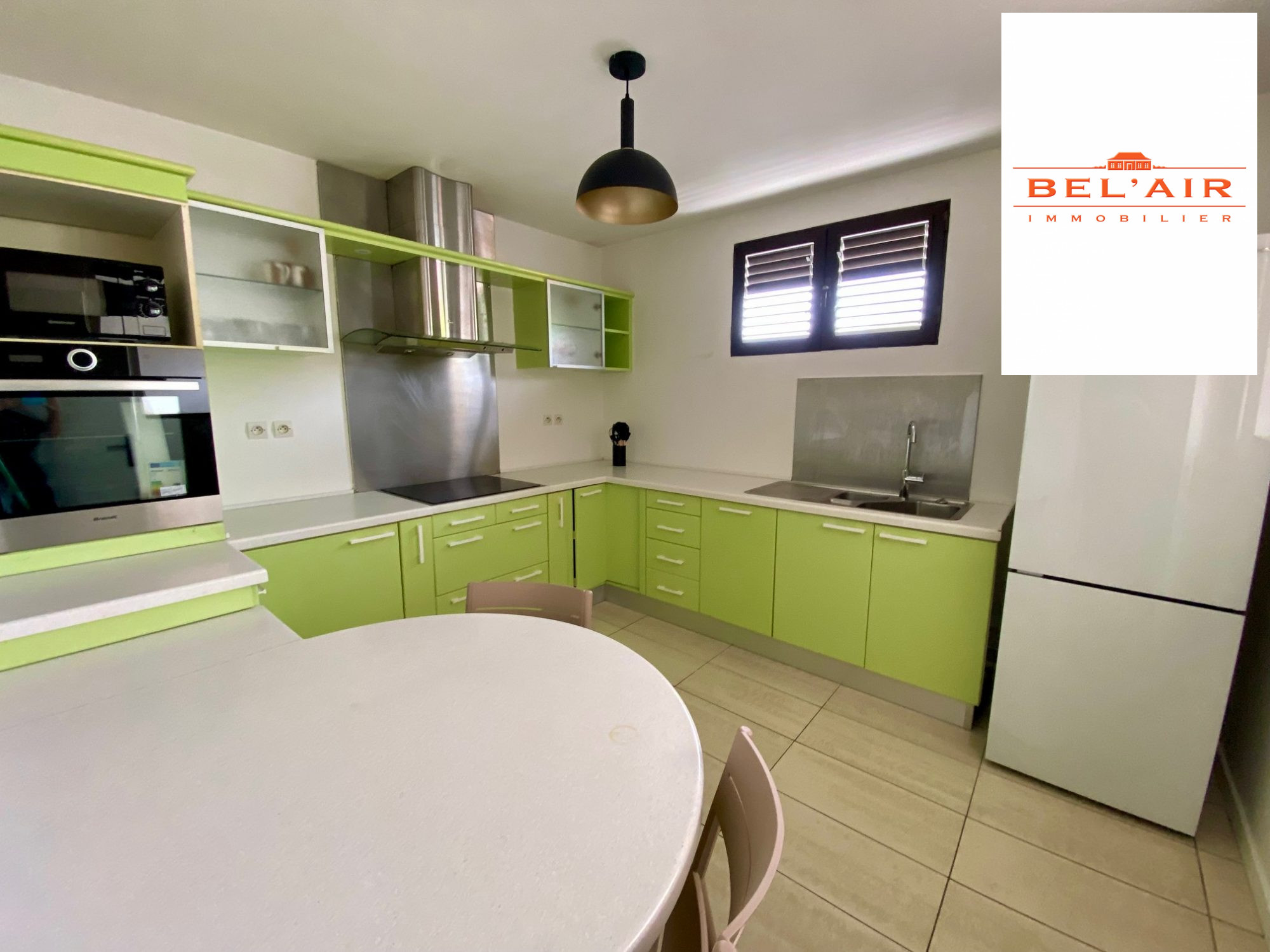 Découvrez ce joli appartement situé dans un haut de villa de type F4 meublé avec un porche d'entrée, un séjour, une cuisine américaine aménagée de placard et équipée, de trois chambres climatisées avec salle d'eau, deux wc, et une terrasse couverte s...