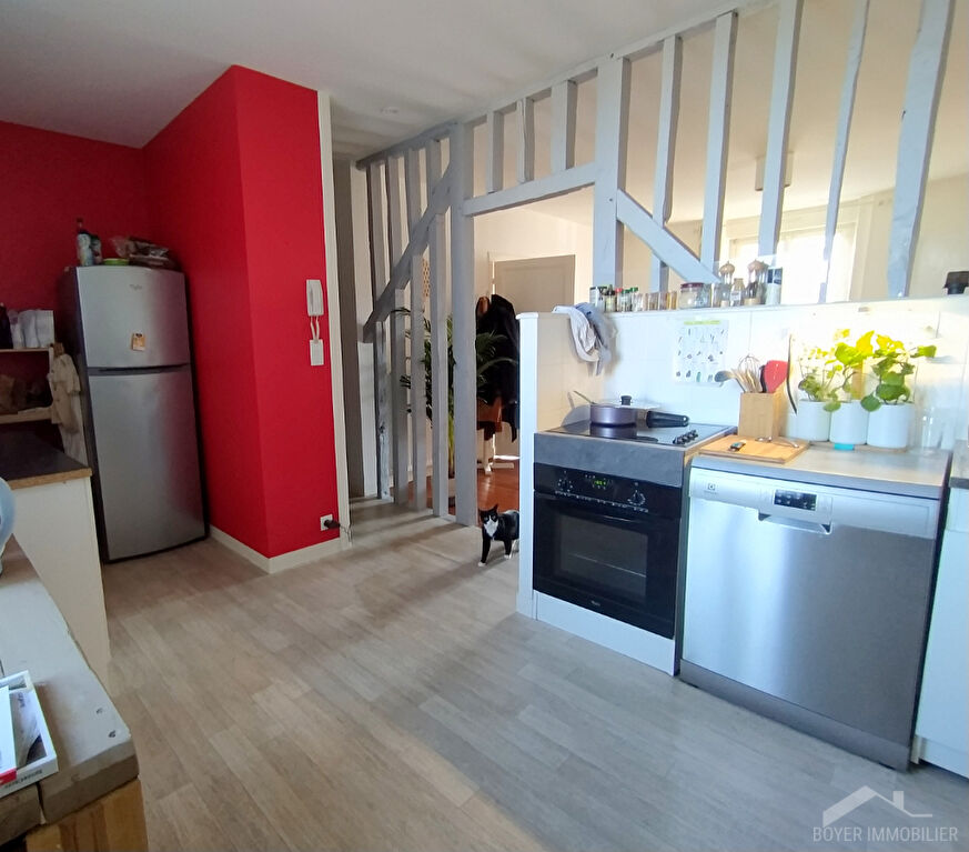 Jolie maison de bourg, louée meublée, entièrement rénovée avec goût en 2024 , d'une superficie de 37.60 m² habitables (50m² au sol), comprenant :