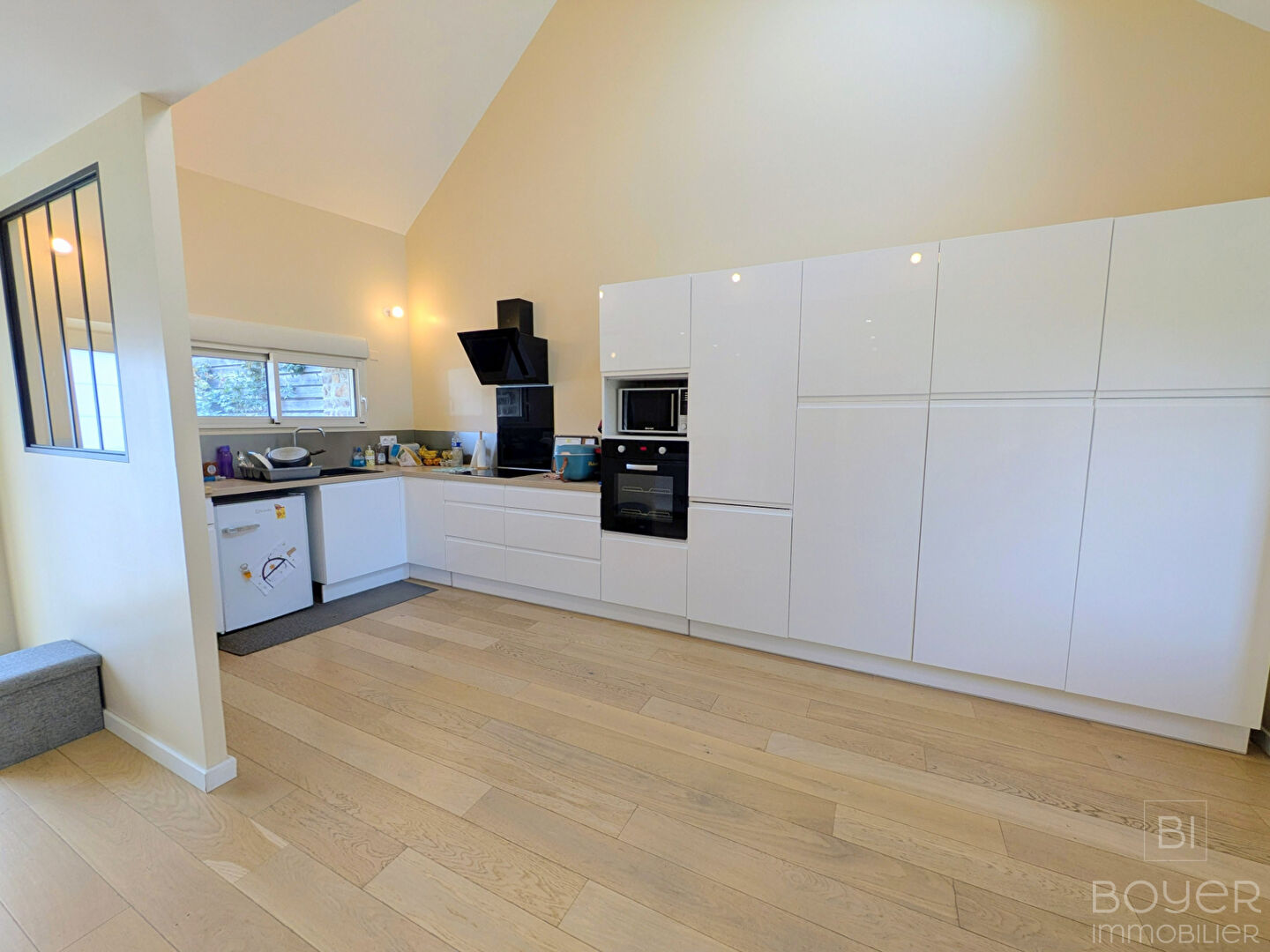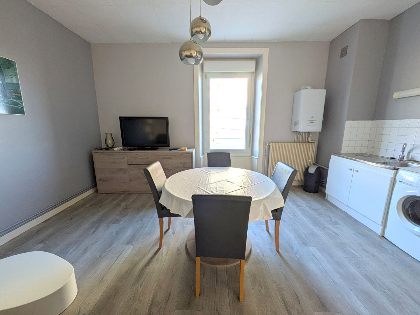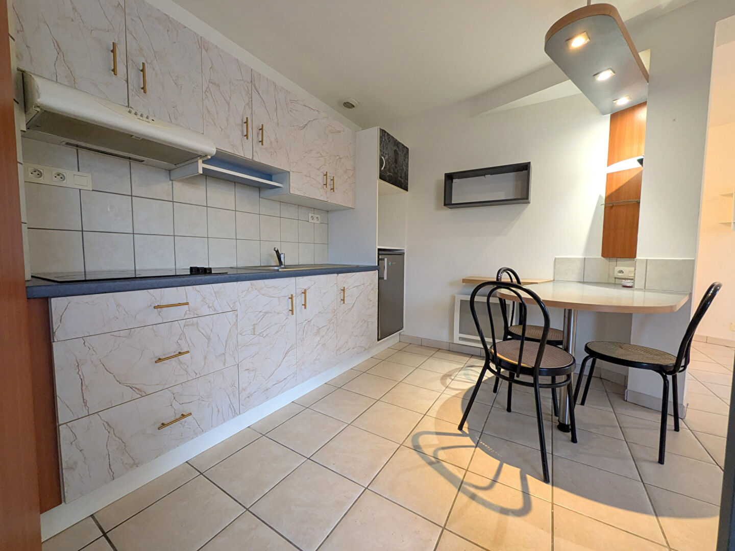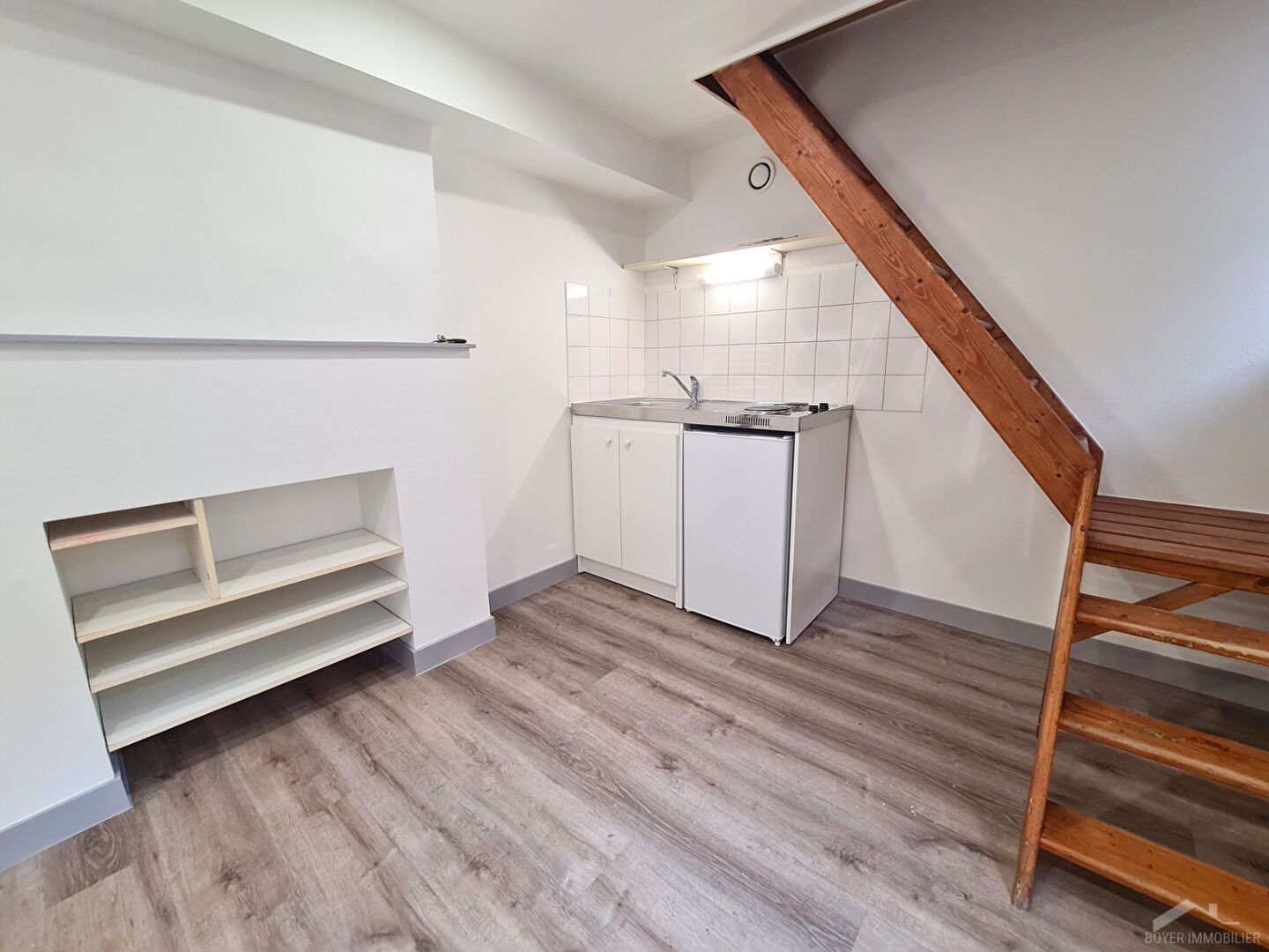 - Au RDC : kitchenette équipée neuve (plaque et frigo) ouverte sur séjour (peinture et sol refaits).