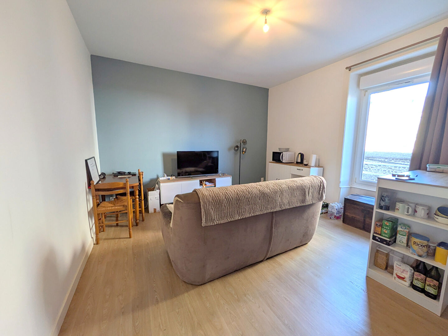 Appartement T1 de 29 m², situé Rue de Fougères, comprenant cuisine aménagée et équipée ouverte sur pièce de vie, coin nuit avec grand placard, salle d'eau avec WC.