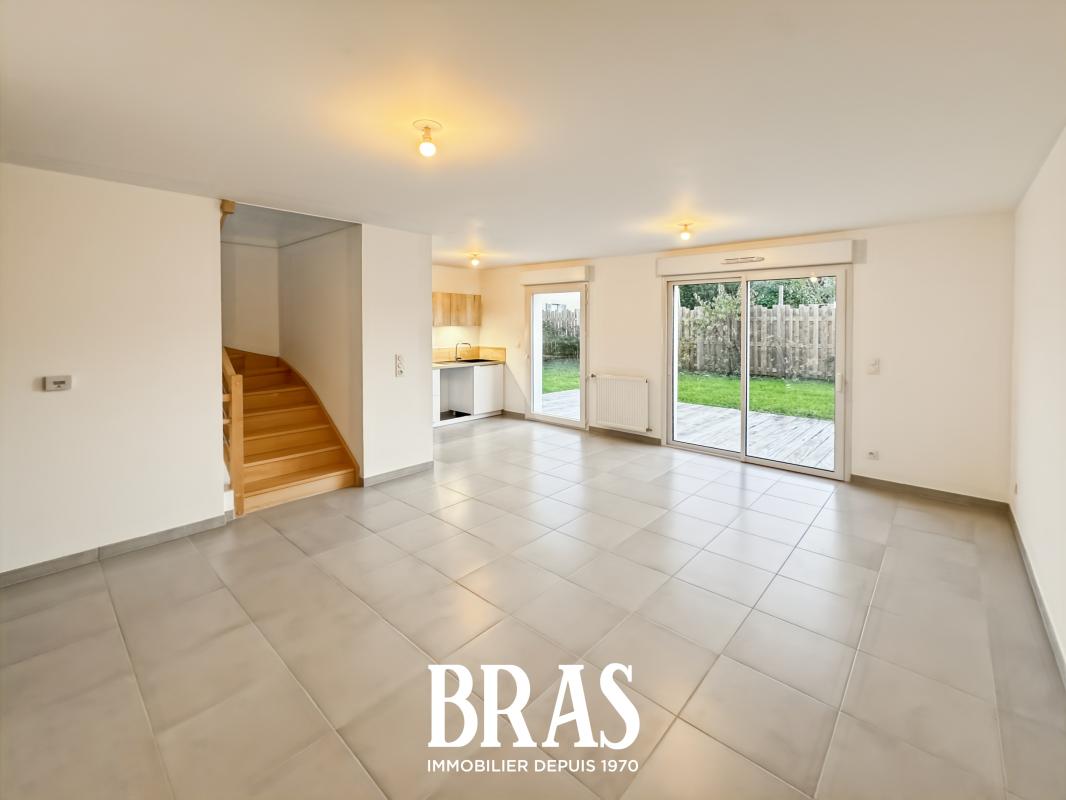 Maison récente de type 4 de 90.30 m² sur 2 niveaux et comprenant : Au rez-de-chaussée, un jardinet de 62m², une entrée avec placard, une pièce de vie de 36m² avec cuisine aménagée et équipée (plaques de cuisson et hotte), donnant sur une terrasse de 13,10m² et...