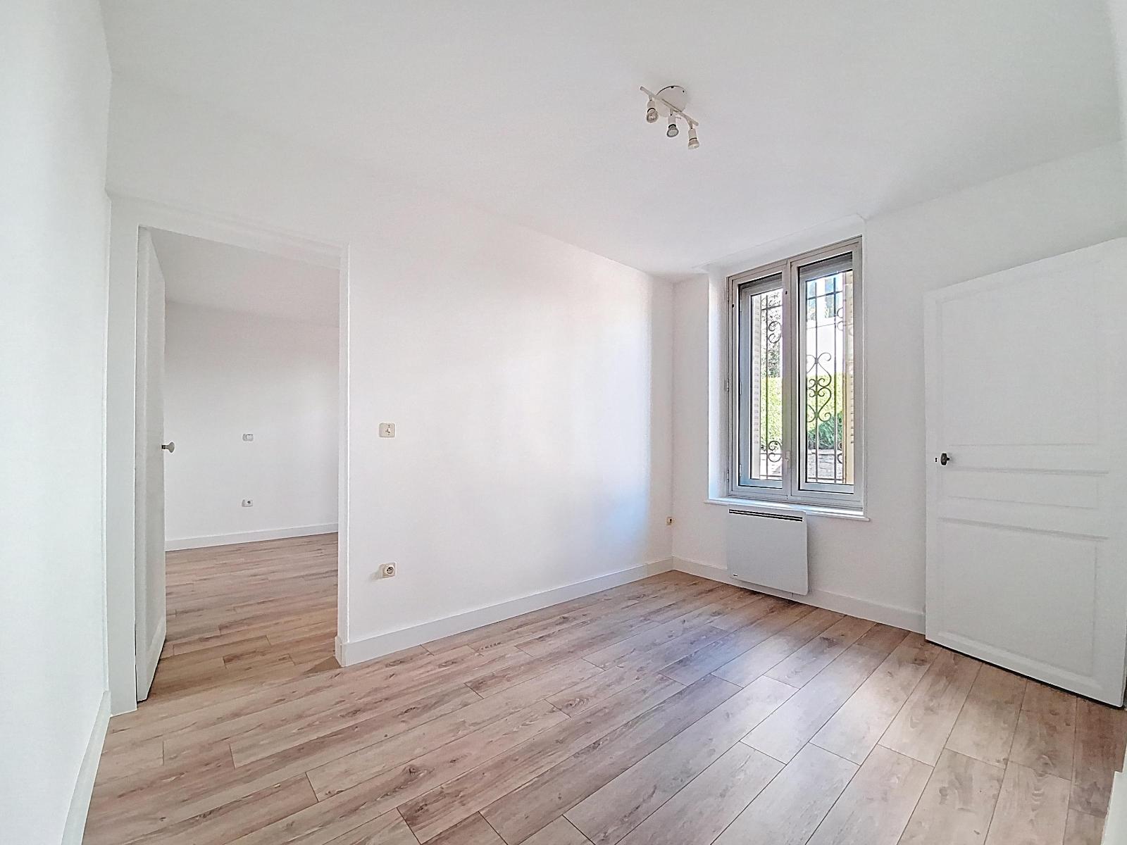 Appartement lumineux en rez-de-chaussée comprenant une entrée, un séjour sol parquet et cheminée décorative, une chambre spacieuse, une cuisine séparée aménagée, une salle...