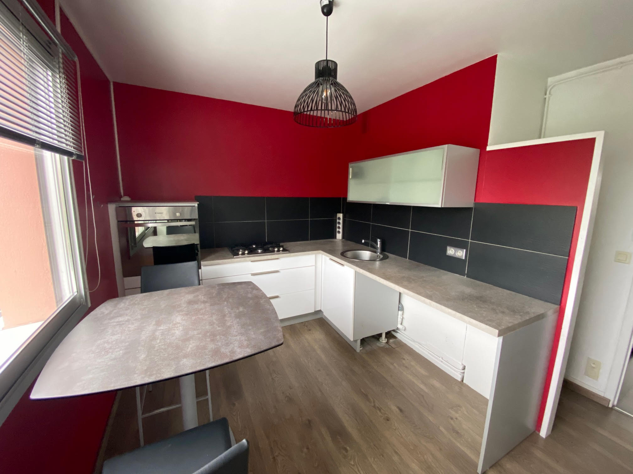 Cet appartement T4 se compose d'un hall d'entrée, d'une vaste pièce de vie et d'une cuisine équipée avec accès au balcon.