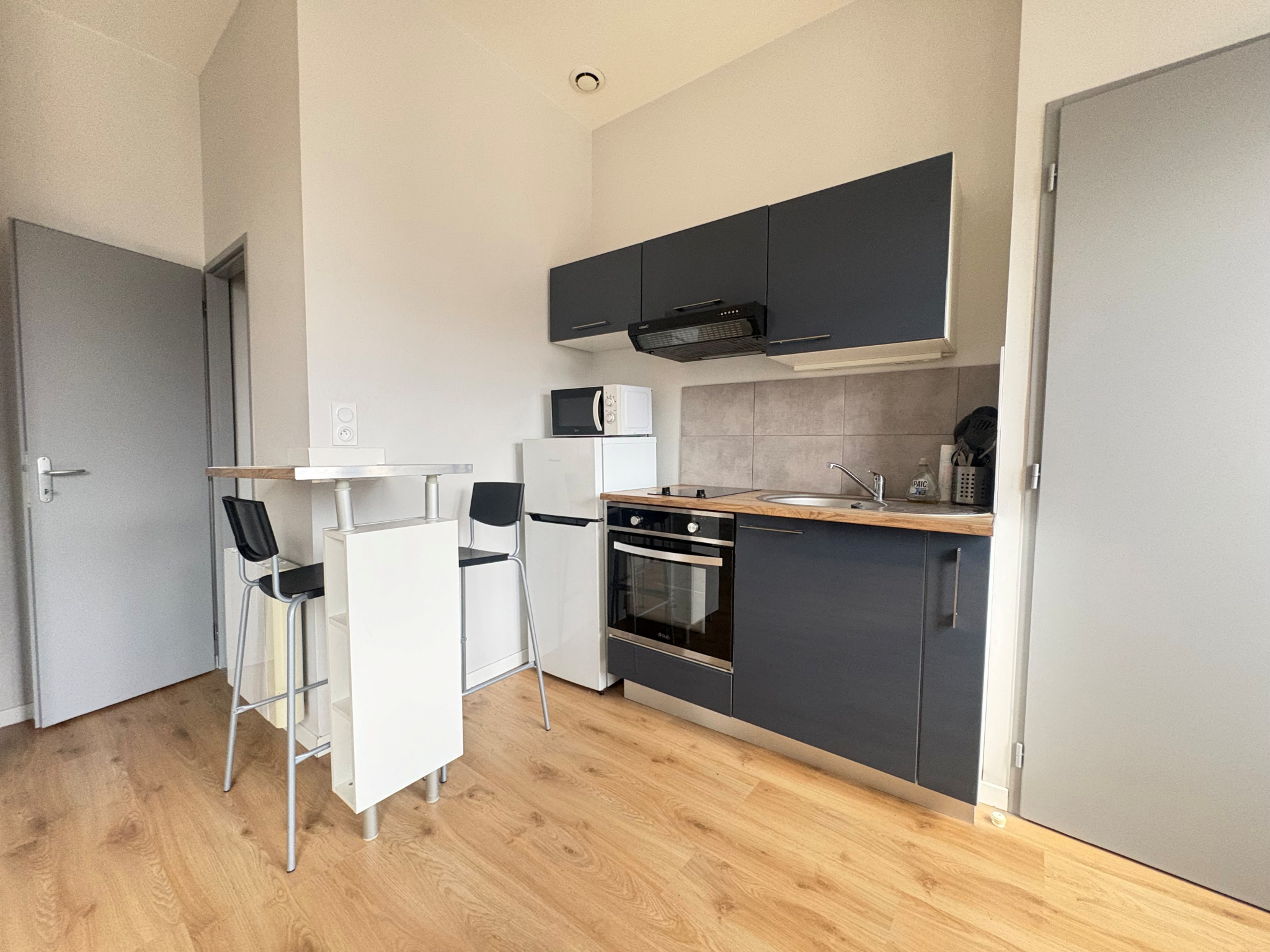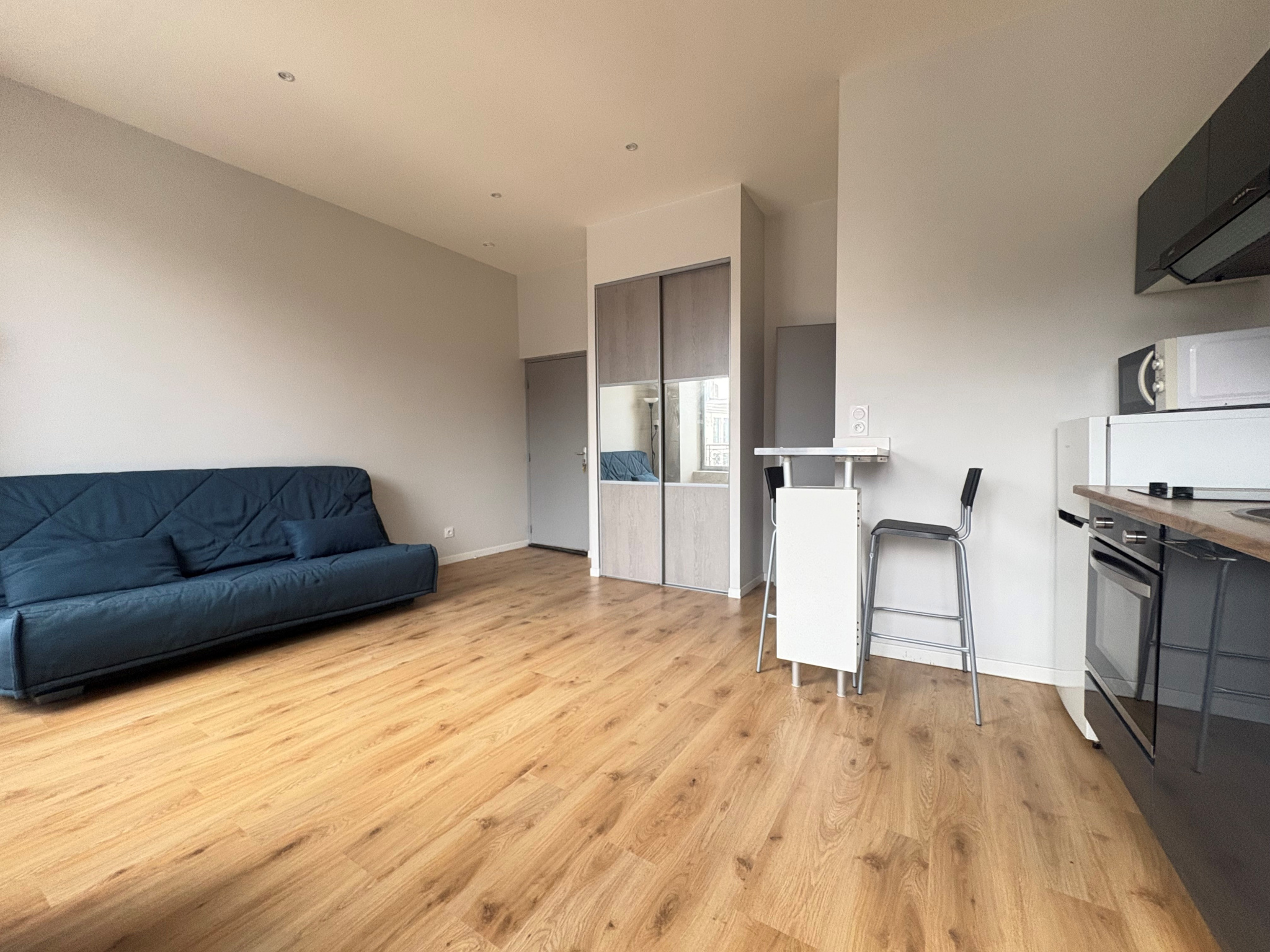 En rez de chaussé retrouvez ce charmant studio meublé de 18m2 refait à neuf et trés bien agencé avec une optimisation de toute la surface habitable.