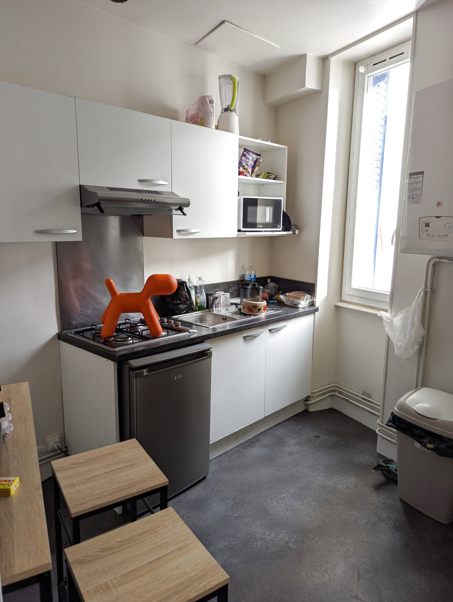 Cet appartement T4 se compose d'un hall d'entrée, d'une vaste pièce de vie et d'une cuisine équipée avec accès au balcon.