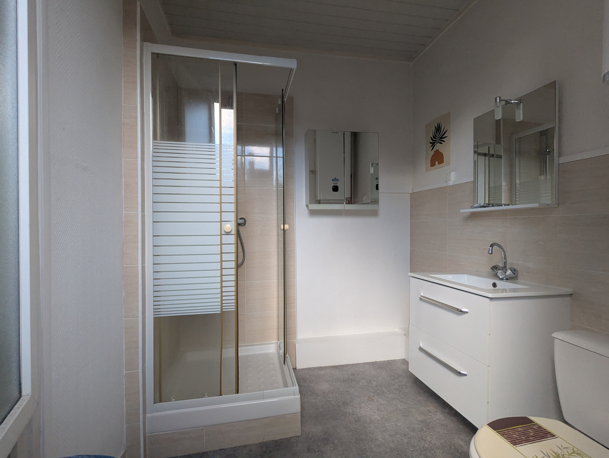Il est composé d'une pièce principale avec kitchenette, puis d'une salle d'eau et wc.