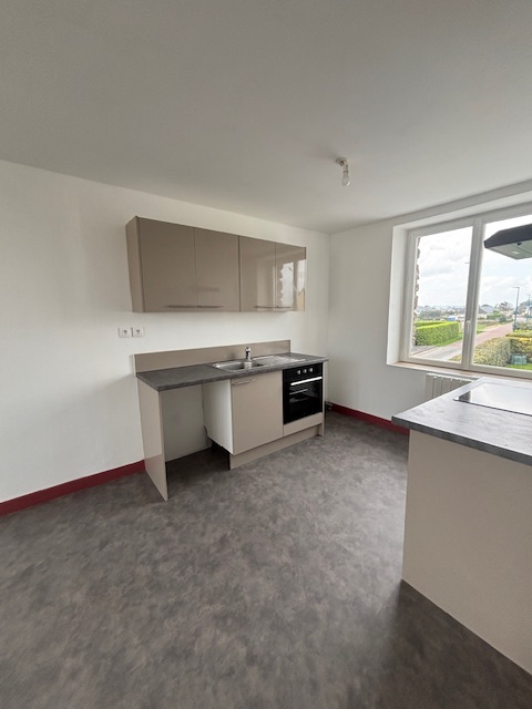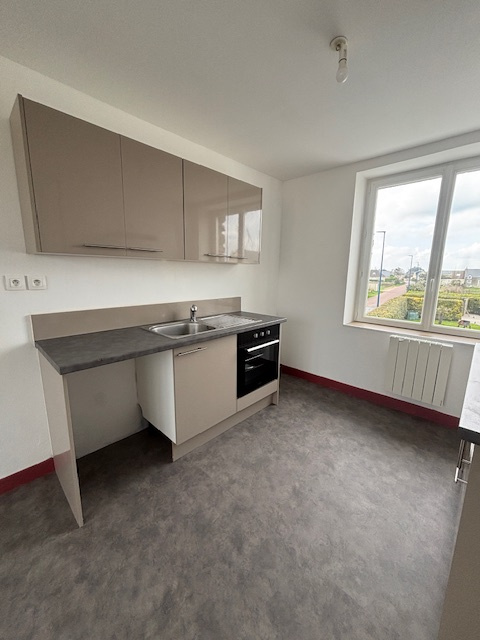 SAINT MARCOUF (50310), bel appartement de 65 m2 non meublé dans un petit collectif, au 1er étage comprenant une cuisine aménagée (mise à diposition plaque, hotte four) ouverte sur belle pièce de vie, un dégagement, trois chambres, un débarras, une salle d'...