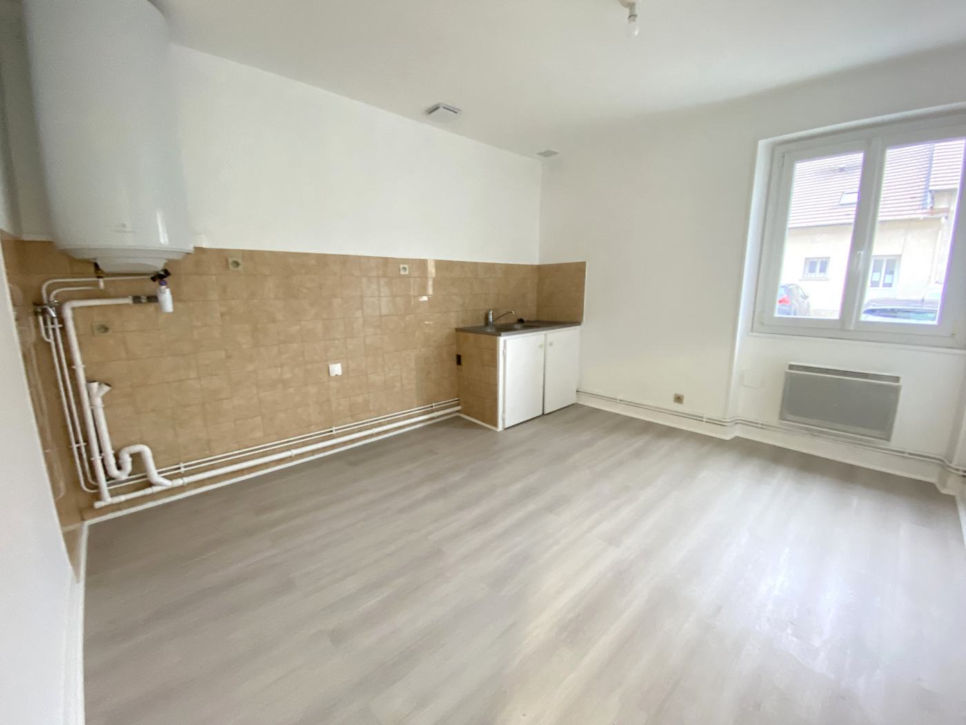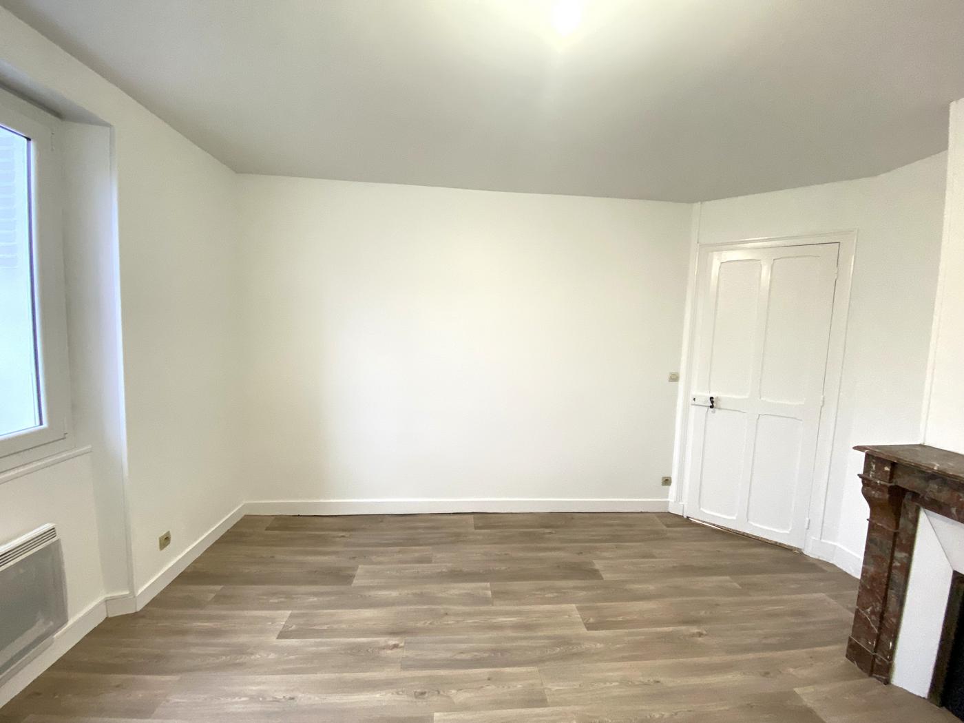En plein centre ville, situé au 1er étage, appartement F2 entièrement rénové, comprenant une entrée, un séjour avec coin cuisine (plaque de cuisson 2 feux, hotte), une chambre, une salle d'eau avec wc - Chauffage par convecteurs électriques.