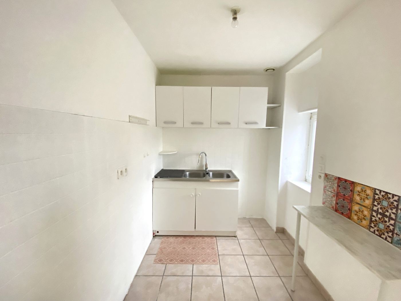 Au 1er étage d'un petit immeuble proche des écoles, appartement F2 en centre ville, comprenant une entrée, un séjour coin cuisine aménagée et équipée (plaque vitrocéramique 4 feux, hotte), une chambre, une salle d'eau avec wc. Chauffage par convecteu...