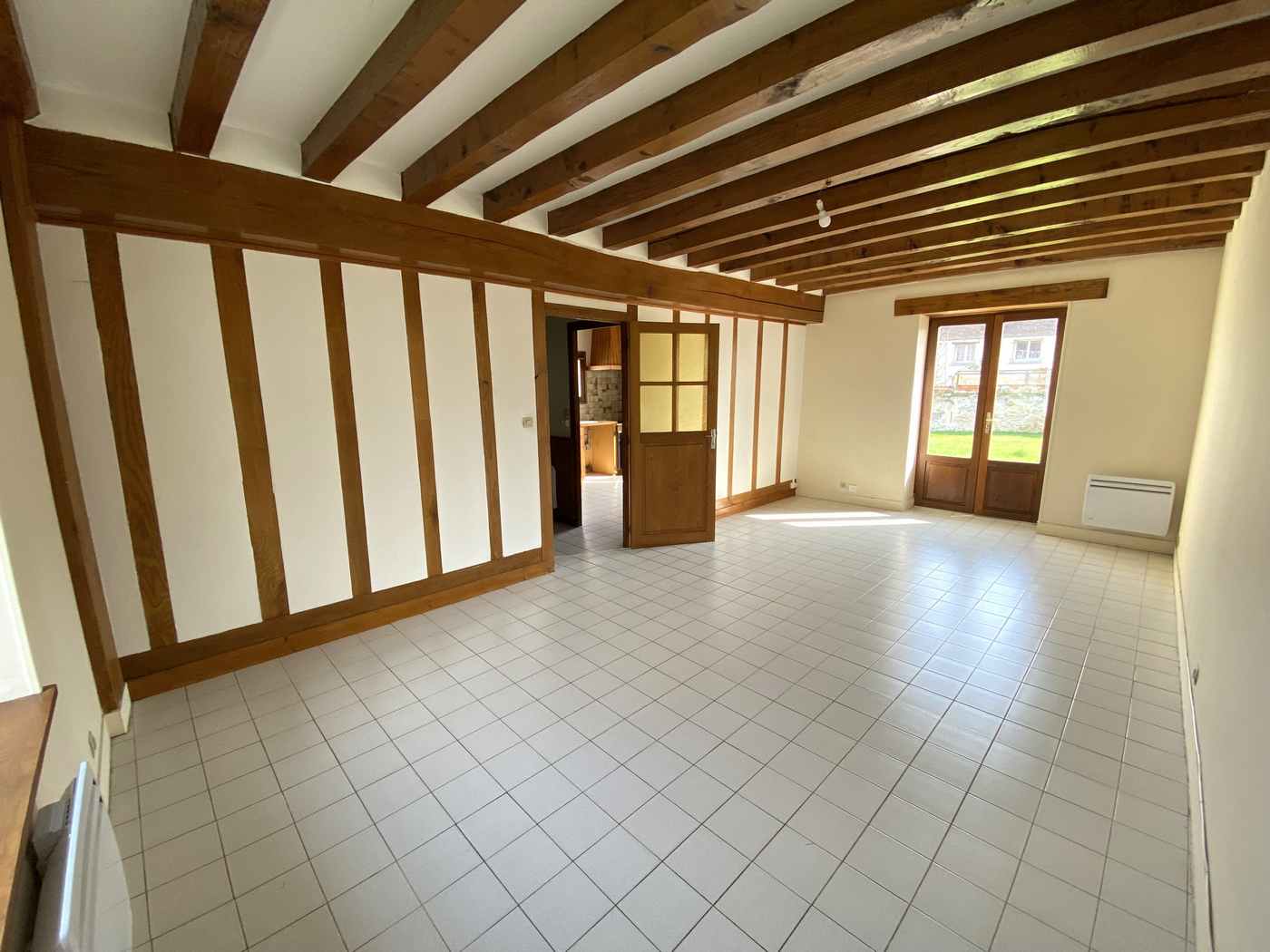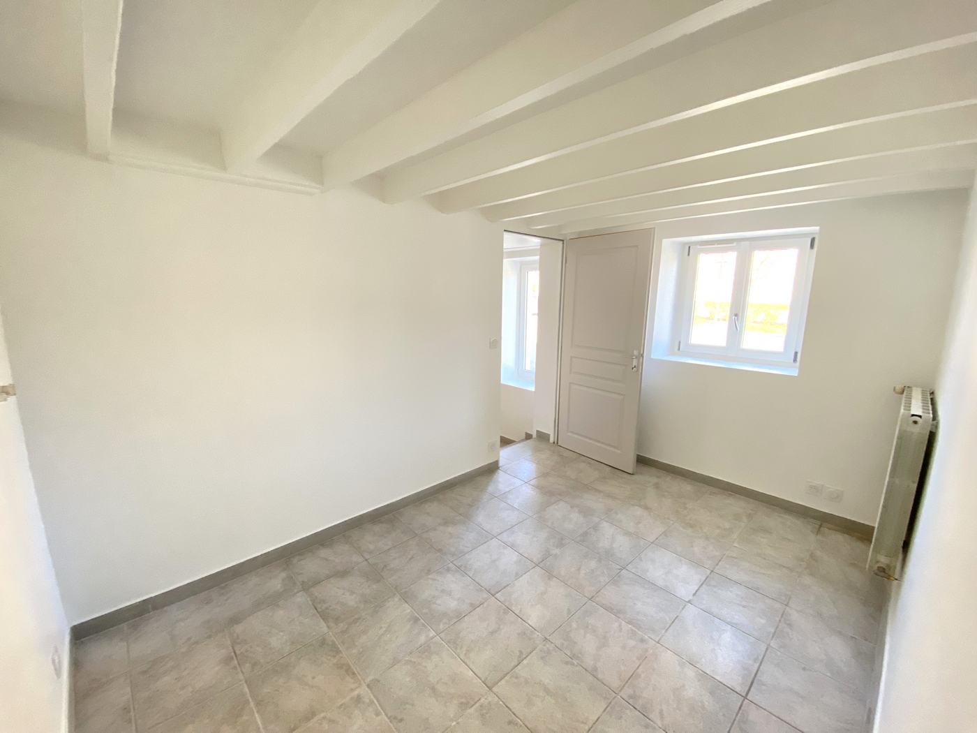 A Mortcerf, dans village calme, appartement F2 rénové comprenant au rez-de-chaussée une entrée et au premier étage, une cuisine AMENAGEE ET EQUIPEE (plaque de cuisson, hotte), un séjour, une chambre, une salle de bain avec WC - Un peit jardin et un emplacement...