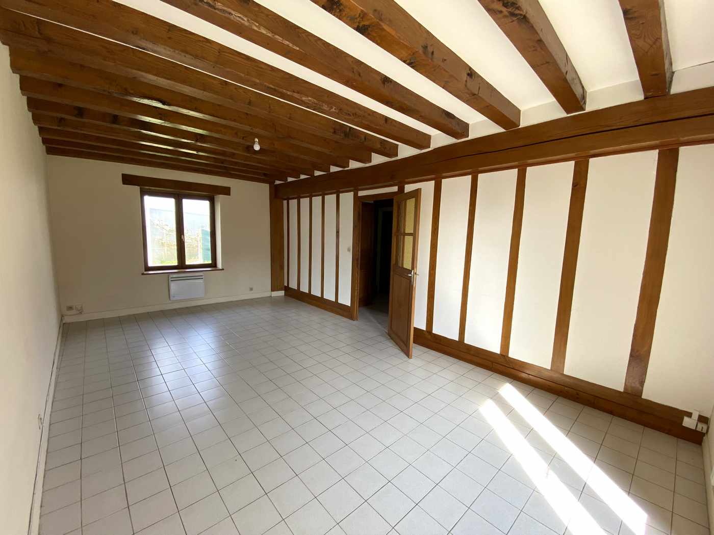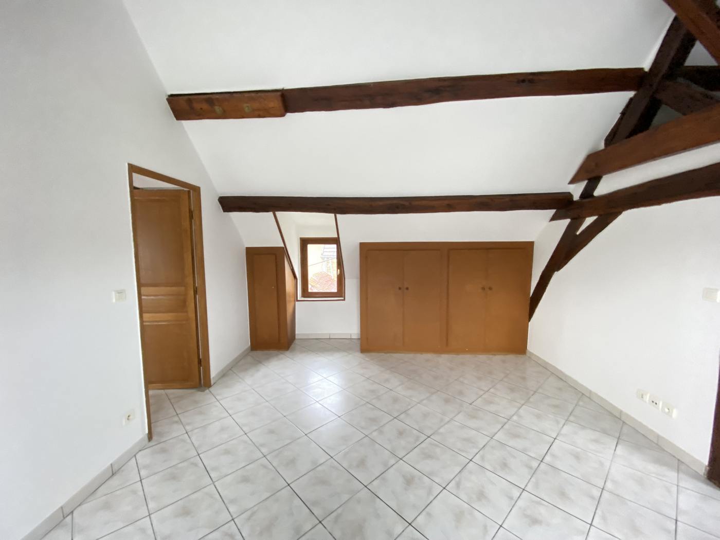 A Rebais, en centre ville, appartement F3 en DUPLEX, comprenant une entrée, un débarras, une chambre, un wc, une salle d'eau, un séjour avec coin cuisine. A l'étage, une chambre, une salle d'eau. Chauffage par convecteurs électriques.