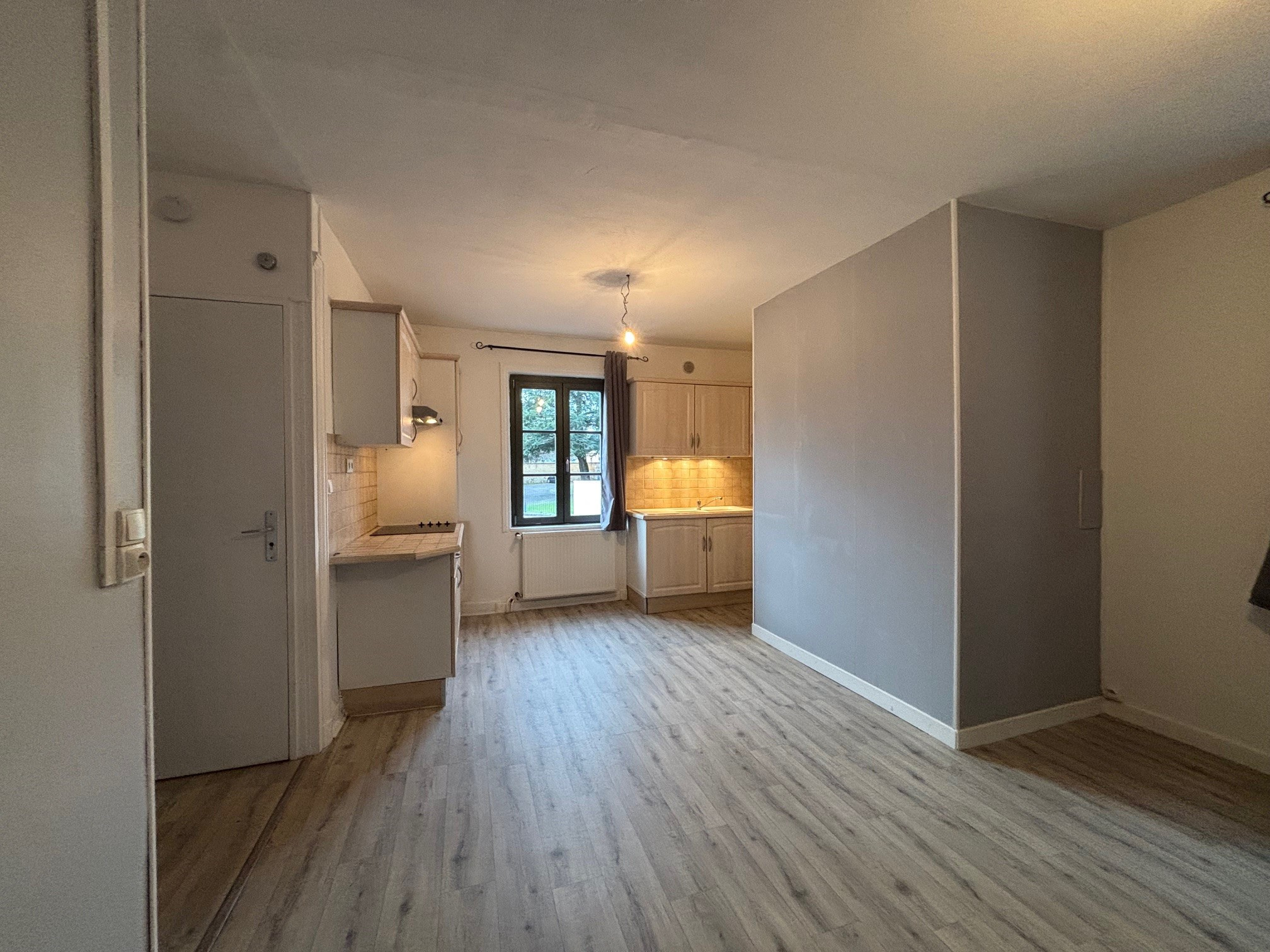 CHARLIEU rue Cacherat, au 1er étage appartement T1 Bis de 38.78 m2 comprenant un séjour avec coin cuisine équipée, une chambre, une salle d'eau et un W.C ; une cave au rez-de-chaussée du bâtiment. Chauffage individuel par chaudière électrique. Disponible ...