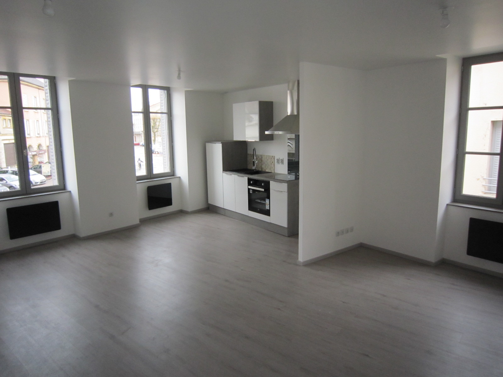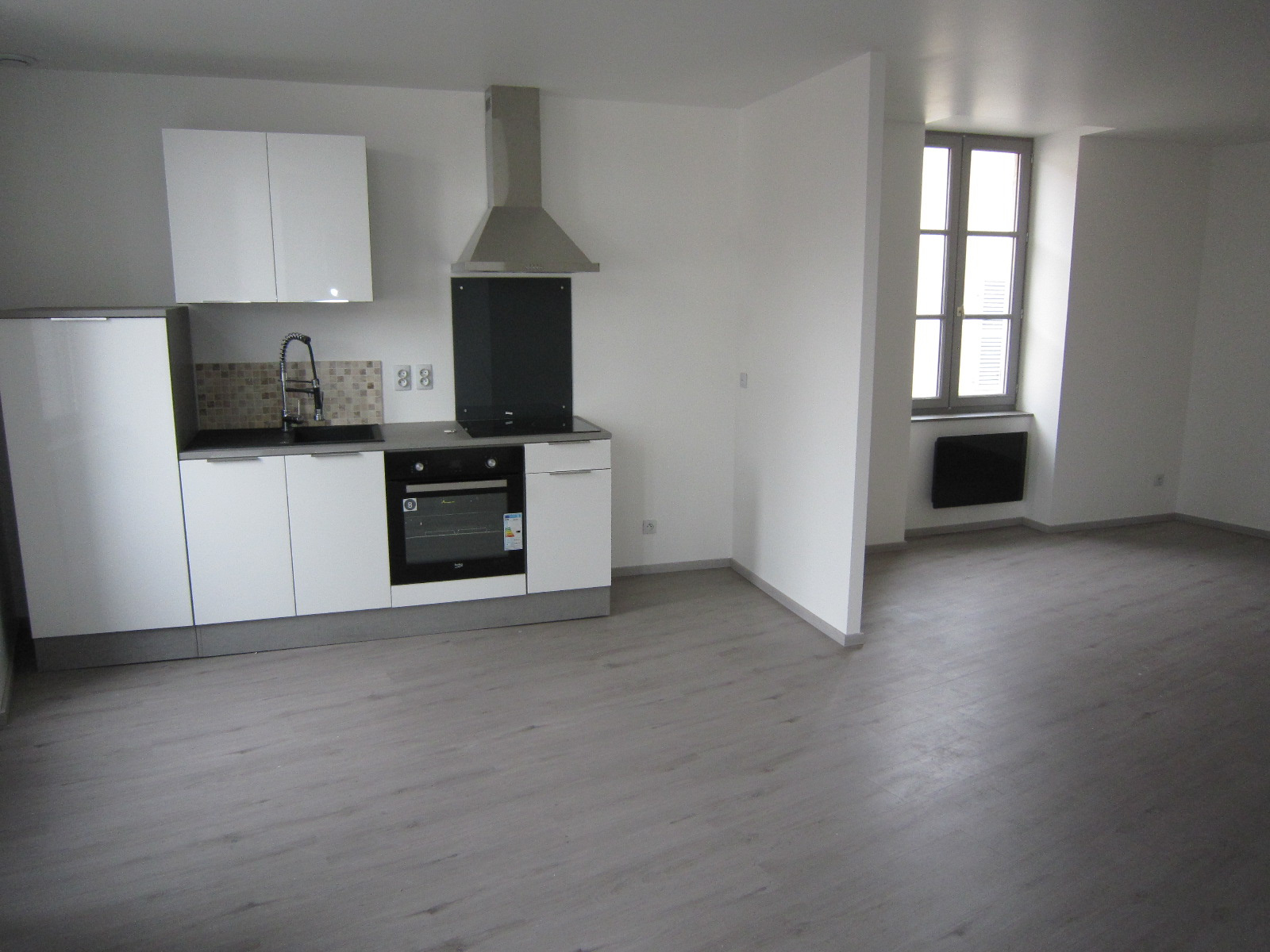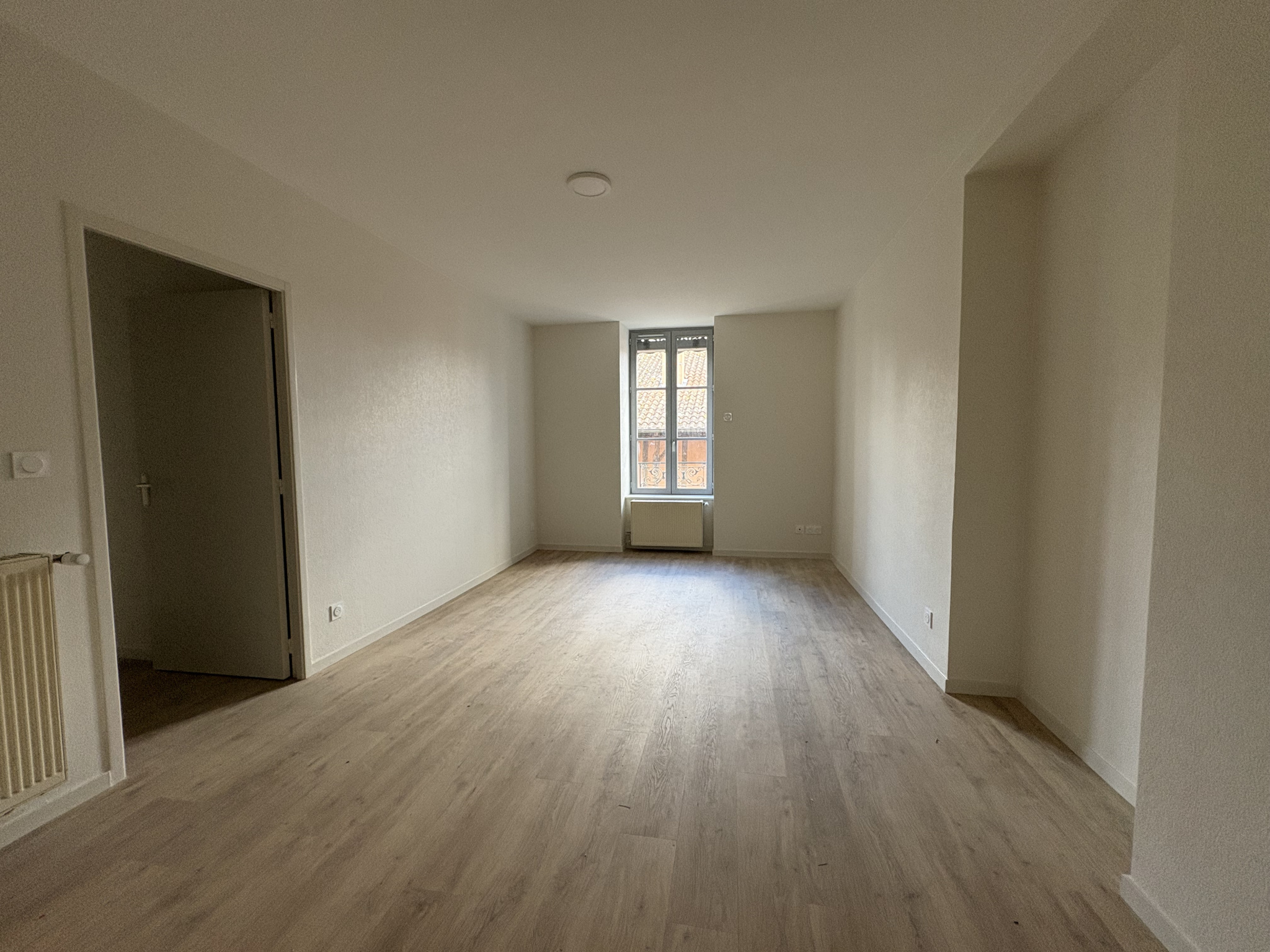 CHARLIEU Rue grenette - Bel appartement entièrement rénové de type 3 d'une surface de 74.51m2 habitables au 2ème étage comprenant une entrée avec placard, une cuisine équipée (hotte, four, plaque et frigo) ouverte sur la pièce de vie. Un dégagement donnan...