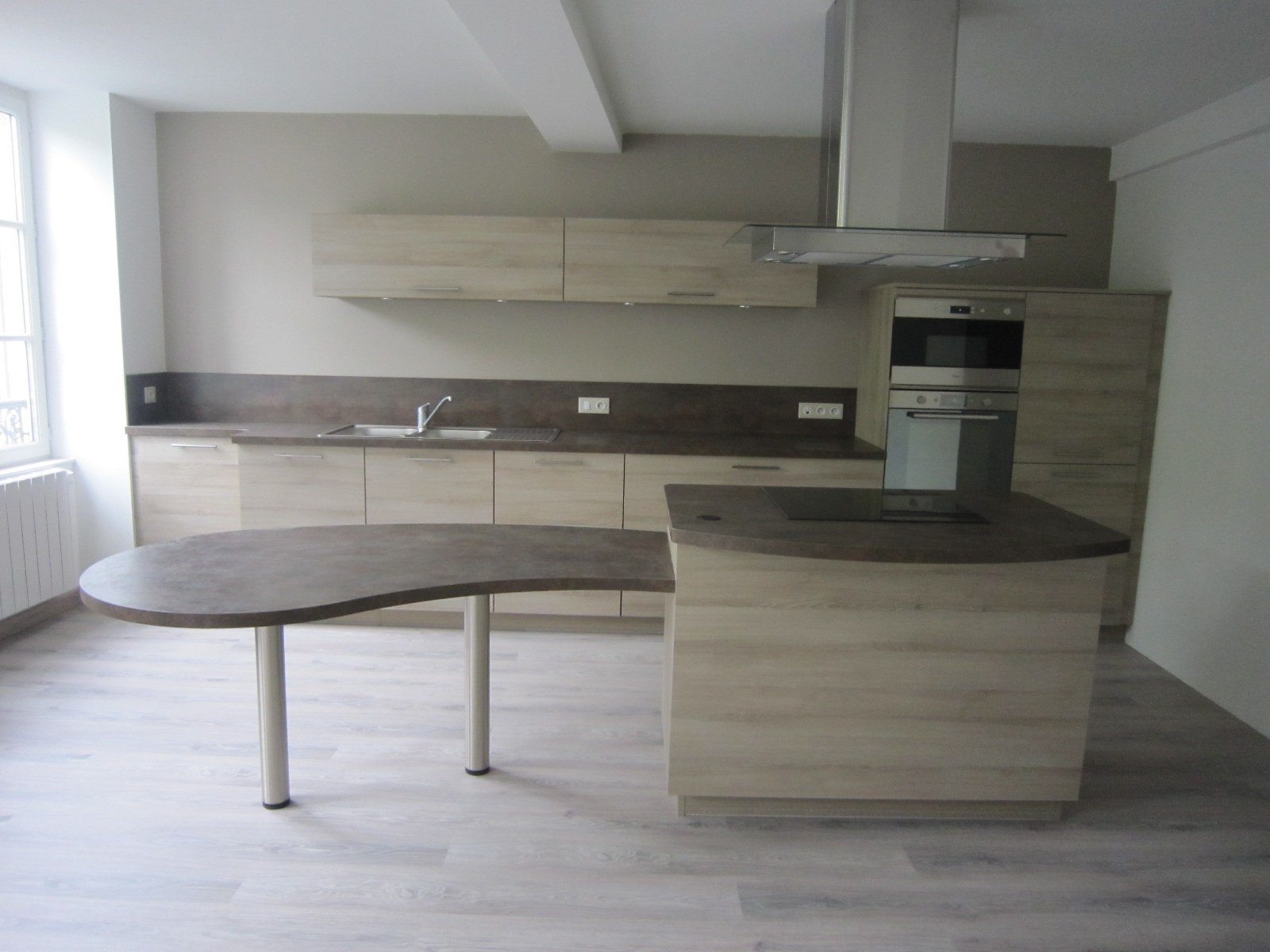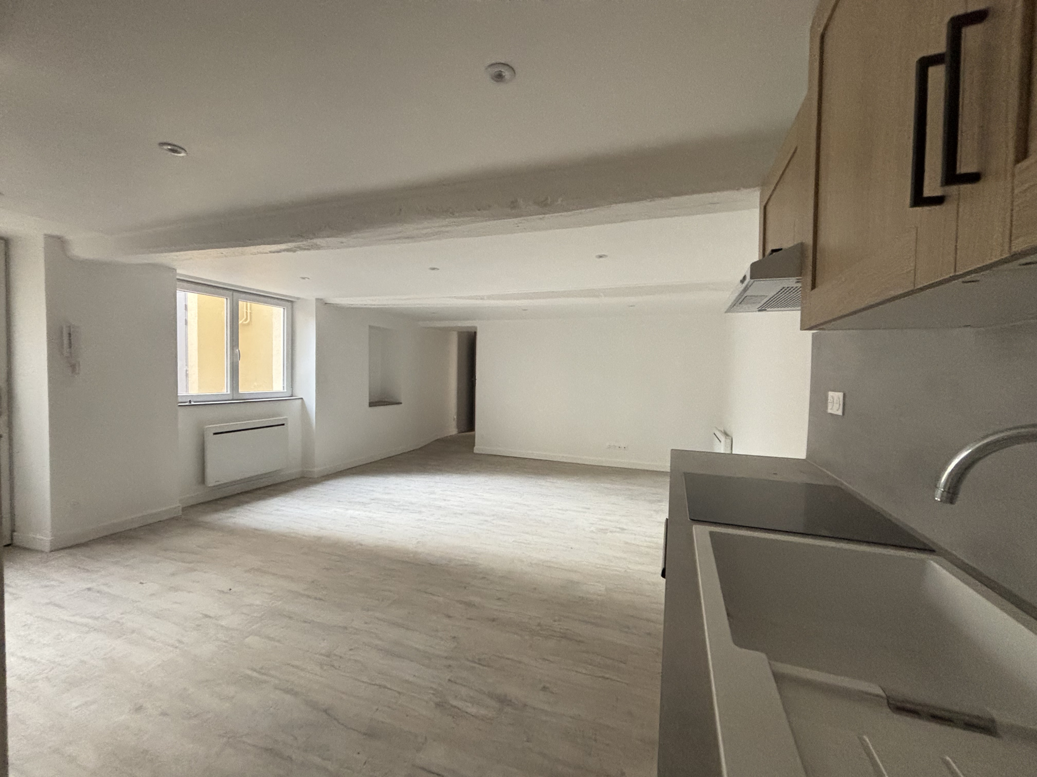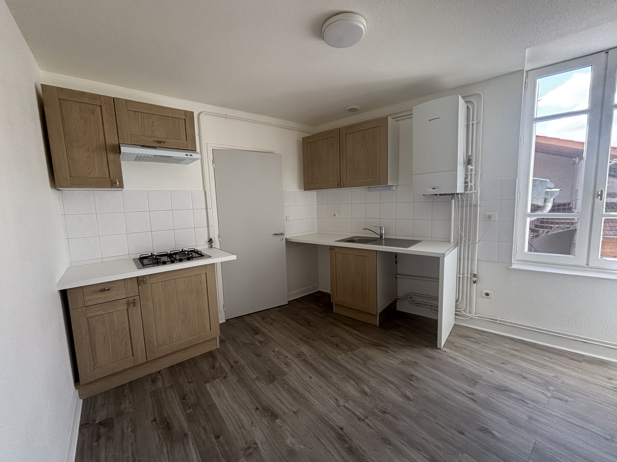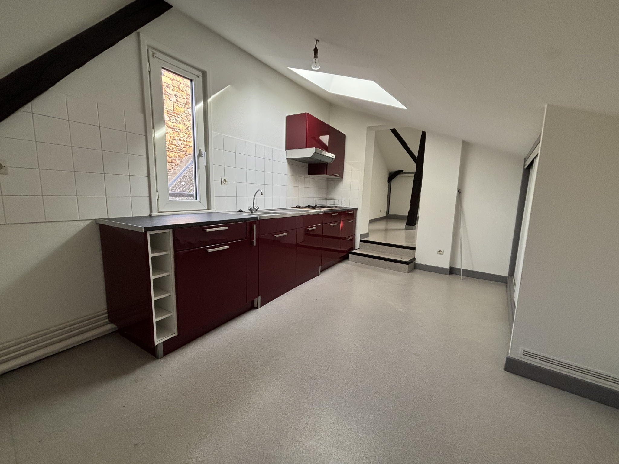Rue des Ecoles CHARLIEU, appartement au deuxième étage comprenant une cuisine américaine équipée, ouverte sur séjour, une chambre, salle d'eau, W.C. Loyer mensuel: 450.00EUR FA:324.00 EUR TTC