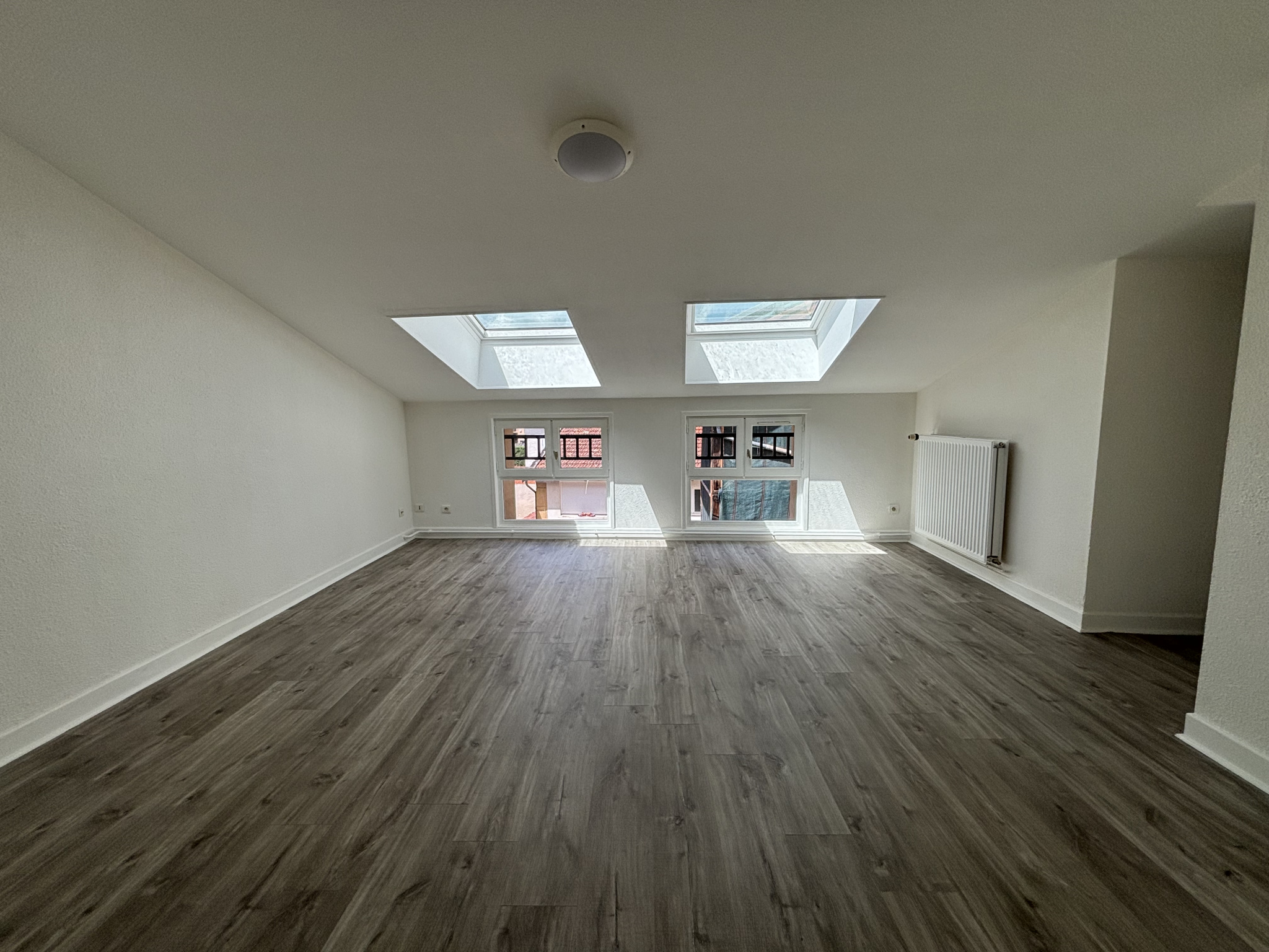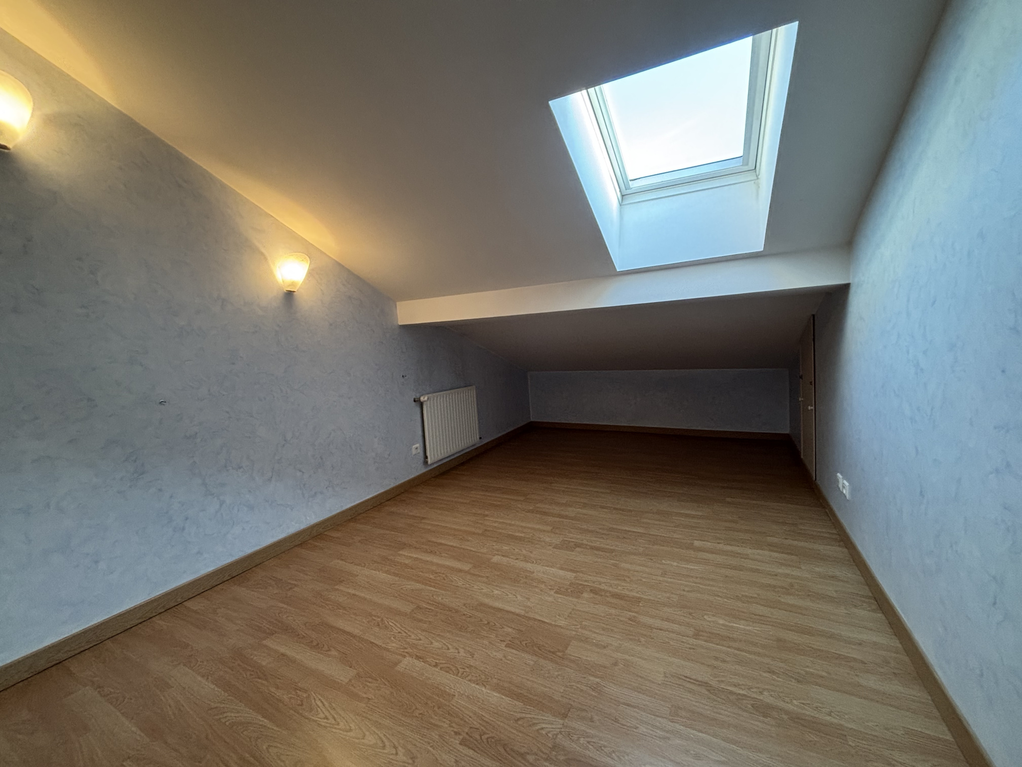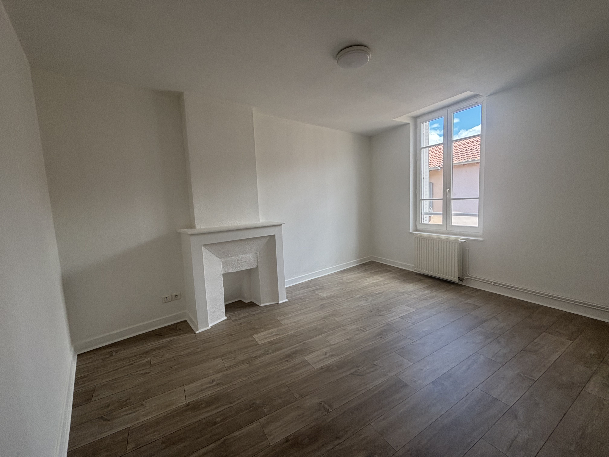 CHARLIEU Rue André Farinet - Appartement T3 au deuxiéme étage d'une surface de 60,40 m2 comprenant un séjour mansardé très lumineux, une cuisine séparé équipée (plaque de cuisson et hotte), un dégagement, deux chambres avec cheminée décorative dont une av...