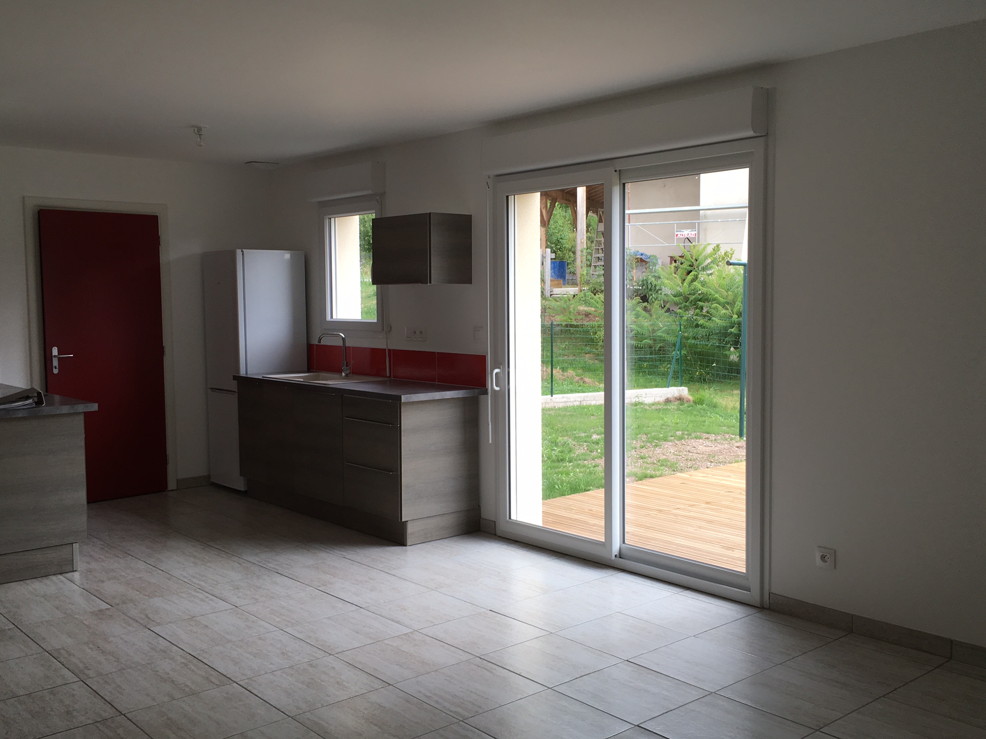 MAISON récente DE PLAIN PIED (RT2012), AVEC JARDIN composé d'une entrée sur séjour, d'une cuisine équipée (lave-vaisselle,four, hotte, plaque induction), d'un cellier, d'une salle d'eau, de WC, de 3 chambres et d'un garage.<BR&...