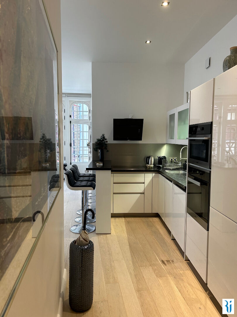 Disponible début novembre, BELLES PRESTATIONS, Au pied du Gros Horloge, Hyper centre ville, beaucoup de charme pour cet appartement de type F2 meublé offrant cuisine ouverte sur pièce principale, chambre, salle de douche...