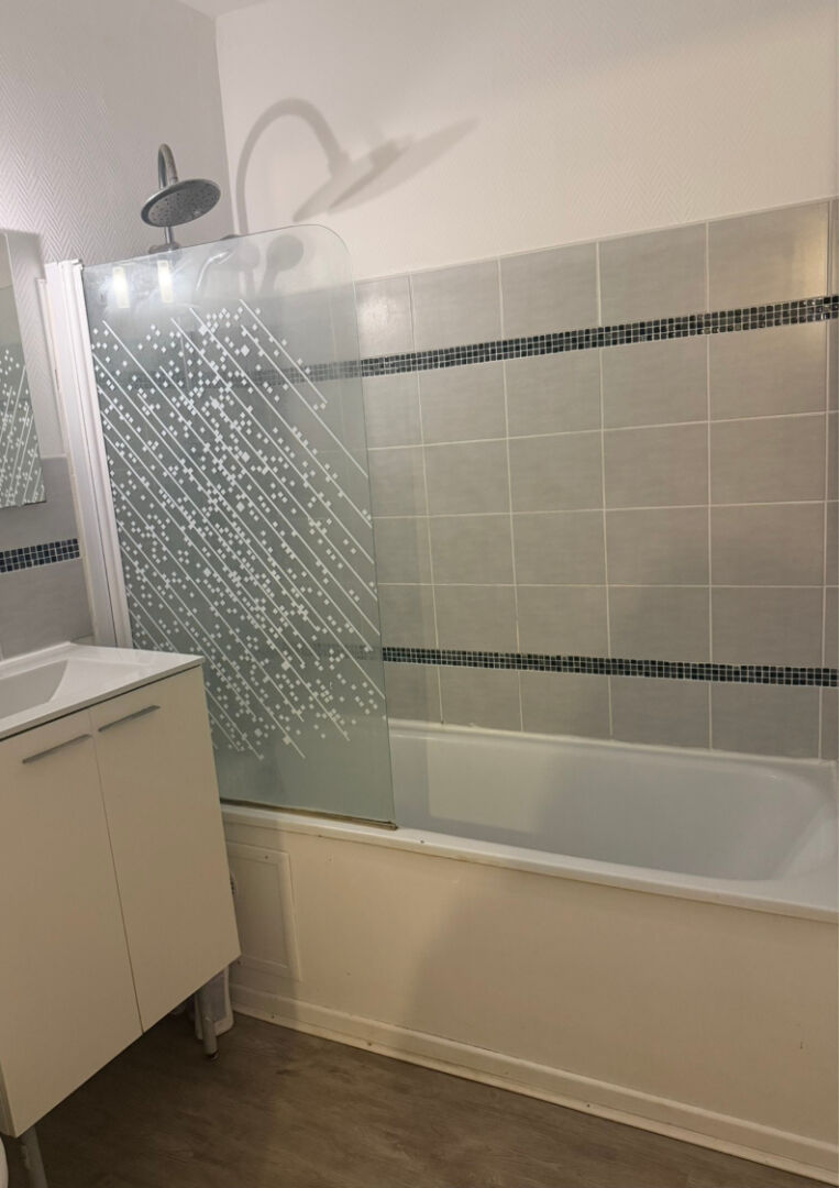 Disponible début avril, proximité gare, au calme, appartement F2 offrant pièce principale avec coin cuisine, chambre, salle de douche.