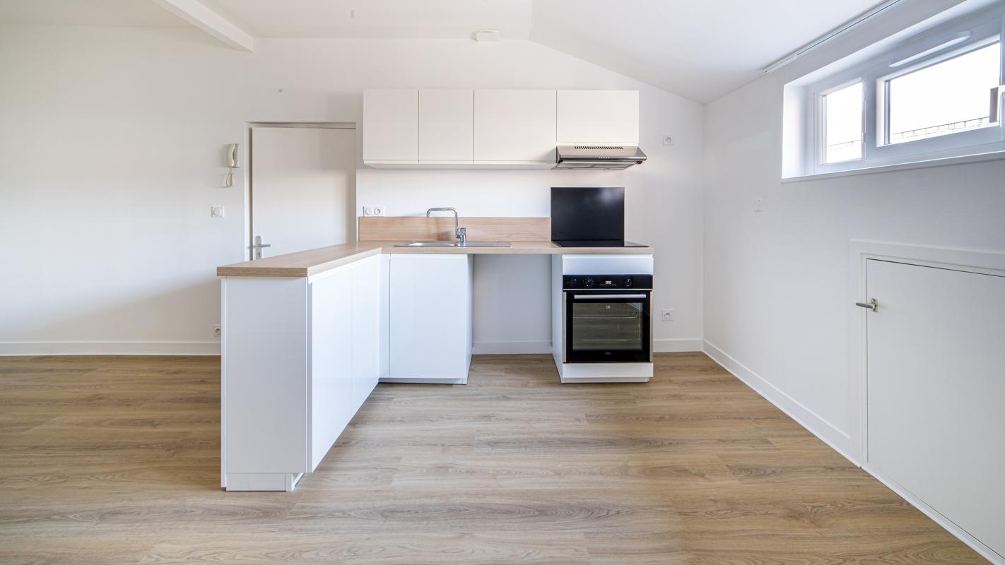 Au calme, à deux pas des commerces, des transports (bus et tram ligne 1), bel appartement de type 2 entièrement rénové aux prestations soignées.
