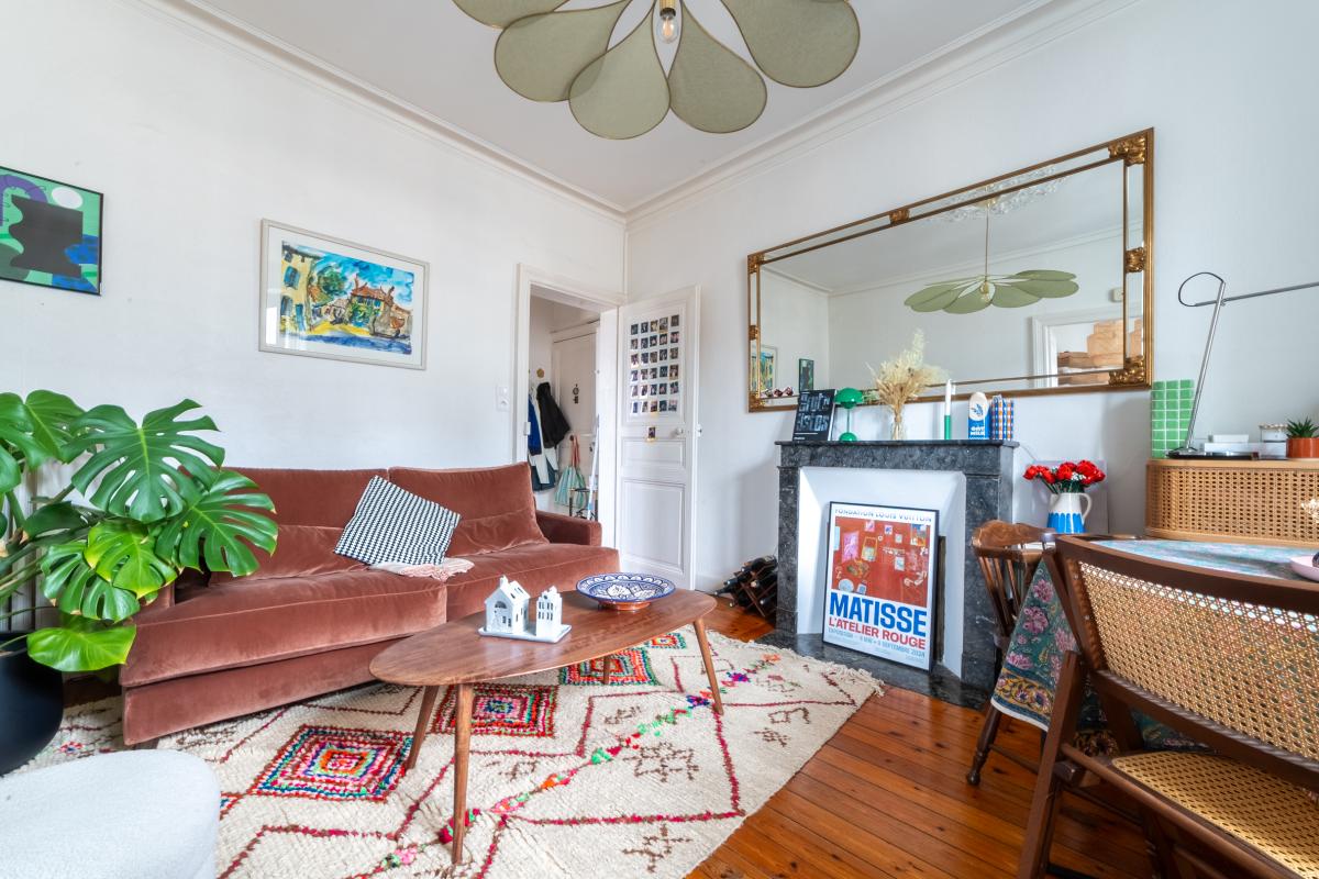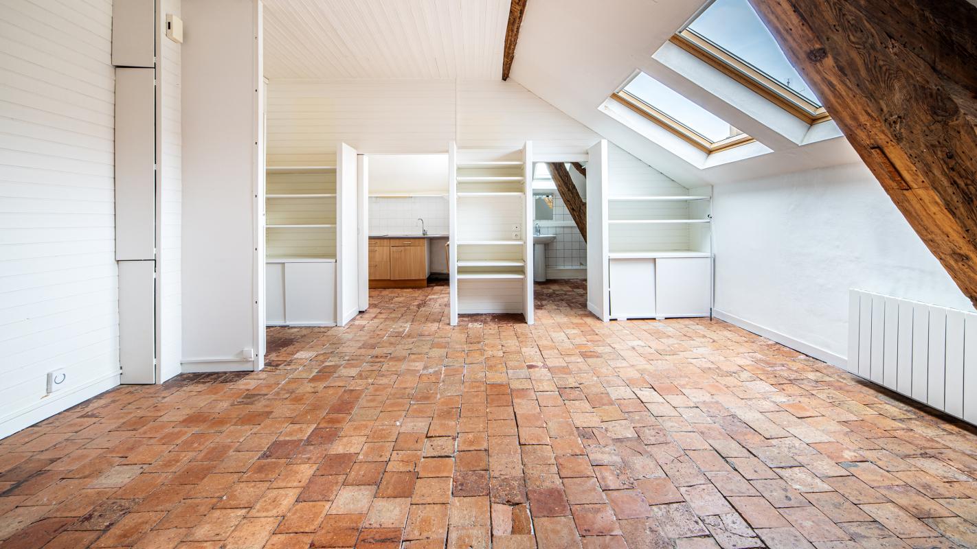 Au 4ème étage d'un immeuble bourgeois de caractère, T2 bis en bon état, plein de charme et très ensoleillé, au calme, offrant de beaux volumes : entrée, bureau, réception sur tomettes avec cheminée, cuisine, salle de bains, WC et c...