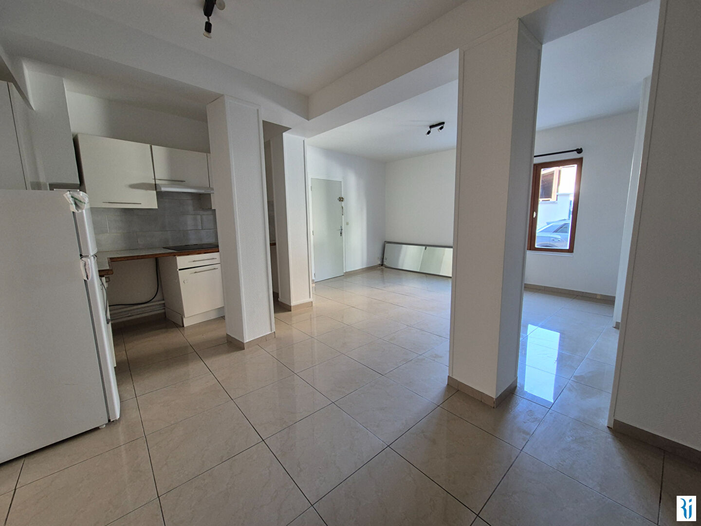 À louer : Appartement de type 3 situé à Rouen. D'une surface de 61.41 m², cet appartement en rez-de-chaussée comprend une pièce principale avec cuisine aménagée, deux chambres, ainsi qu'une salle de bain et un WC séparé. Profitez d'une cour inté...