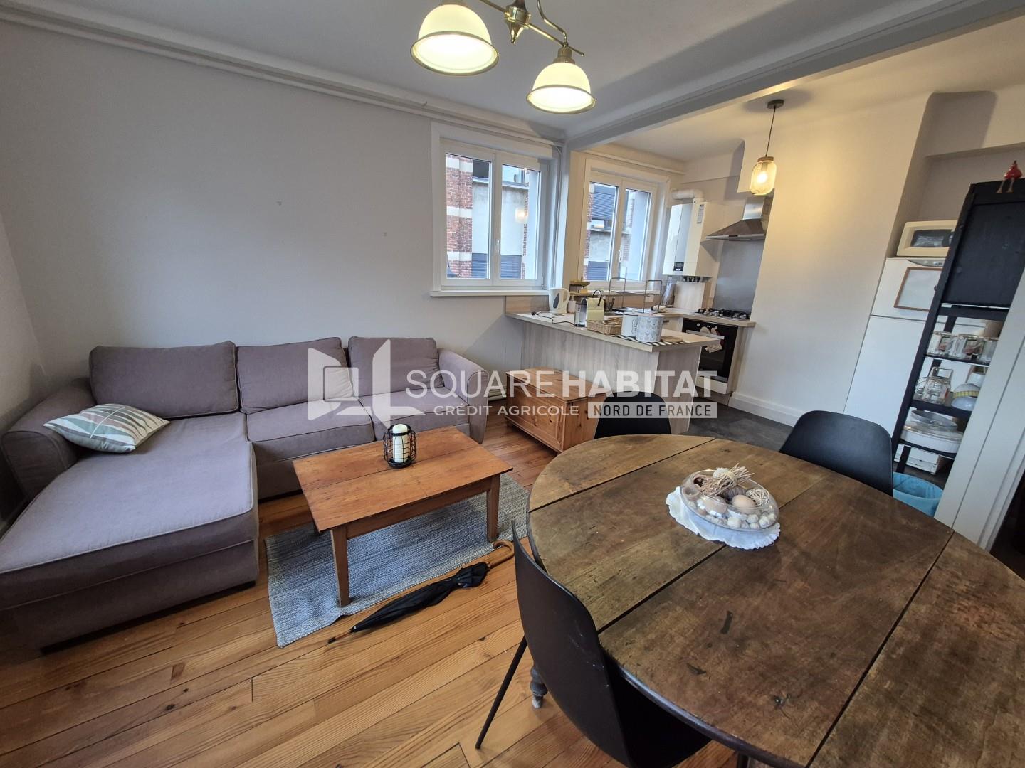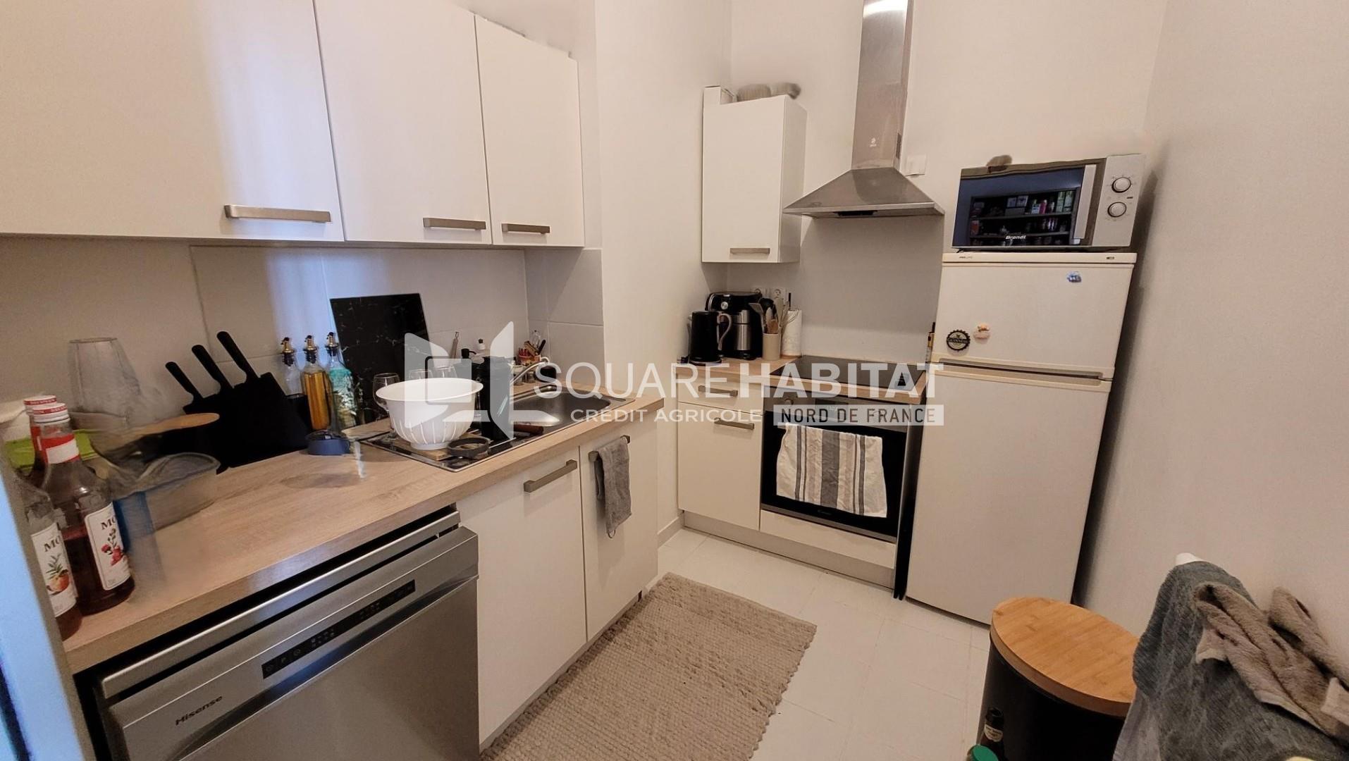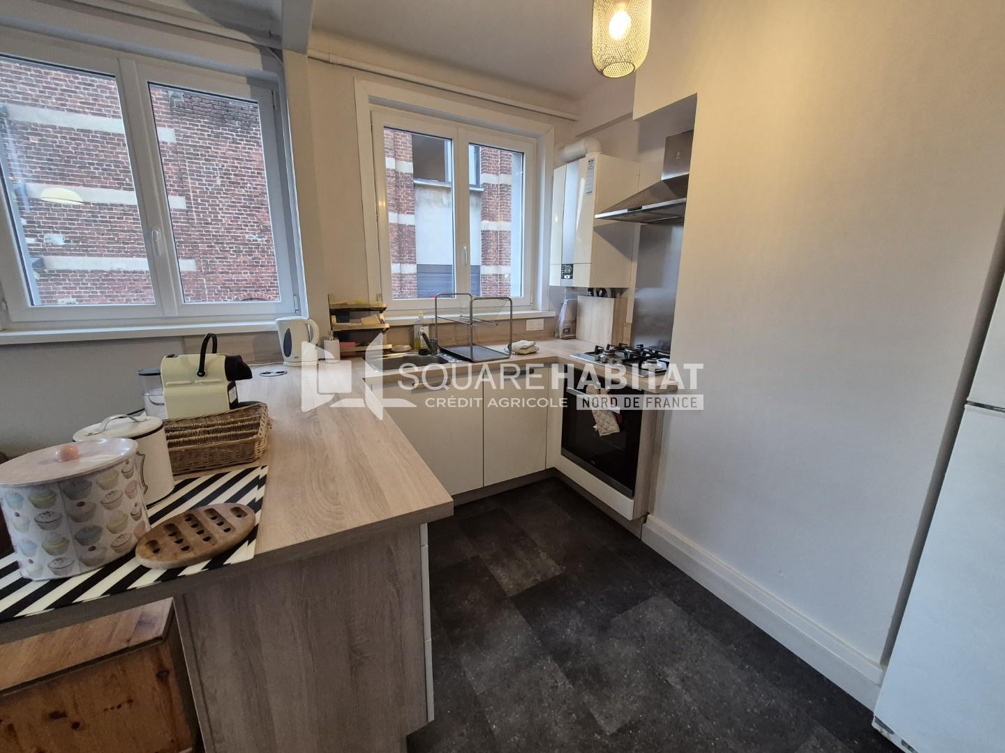 Cambrai, à quelques pas de la place, proche de toutes les commodités et du lycée Fénelon, appartement type 2 situé dans un petit immeuble au 1er étage comprenant une entrée, une pièce de vie avec cuisine ouverte équipée, une grande chambre, une salle de bains ...
