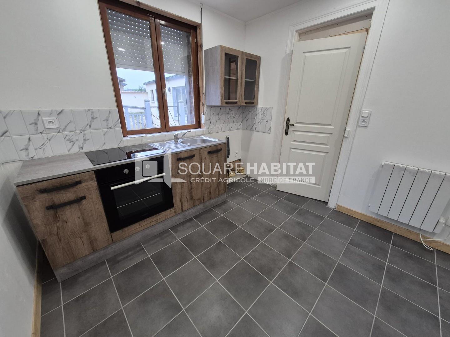 Masnières, dans une rue calme, maison mitoyenne rénovée, comprenant : - au RDC : une entrée, une cuisine indépendante équipée, une pièce de vie, un wc indépendant et une salle de douche -au 1er : un second wc et deux grandes chambres. Une courette, une belle d...