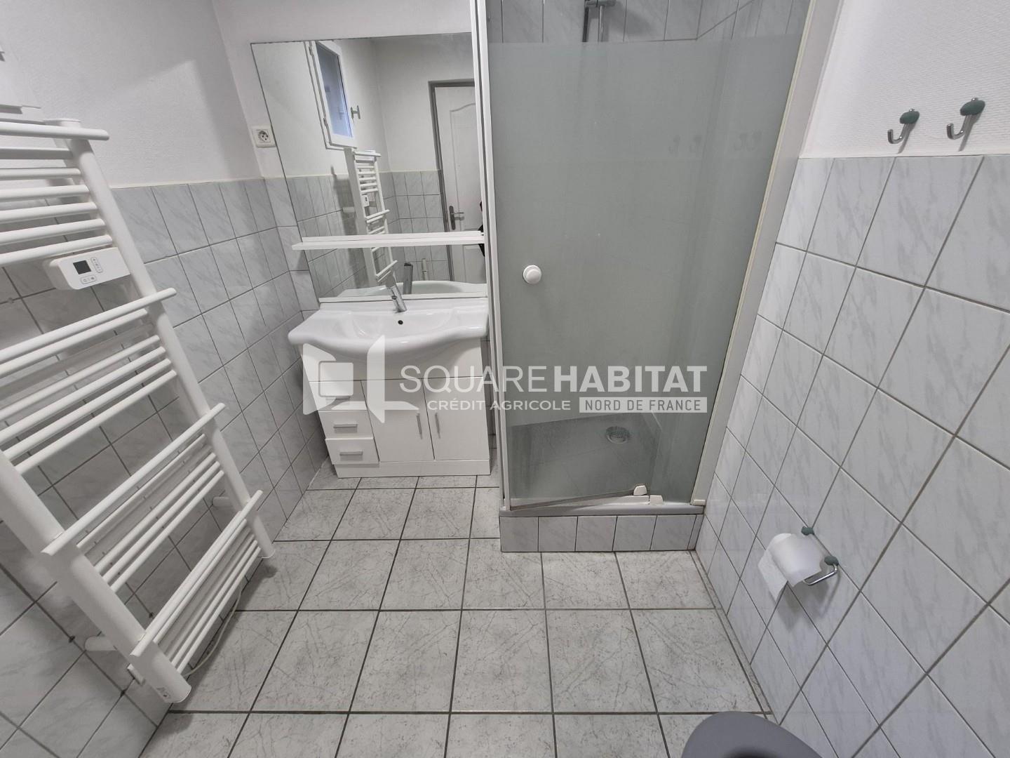 Cambrai, dans un petit immeuble situé au deuxième étage, grand studio comprenant une pièce de vie très lumineuse avec coin cuisine, une salle de douche, un wc indépendant et une coin nuit en mezzanine. Velux avec store occultant Idéal pour une première locatio...