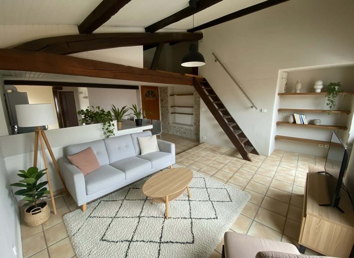 Centre Historique de Montferrand - dans petit immeuble de deux appartements, Au 2eme et dernier étage appartement T2 comprenant pièce de vie avec cuisine américaine entièrement équipée (plaques de cuisson, hotte, frigo, machine à laver, four) une mezzanine au...