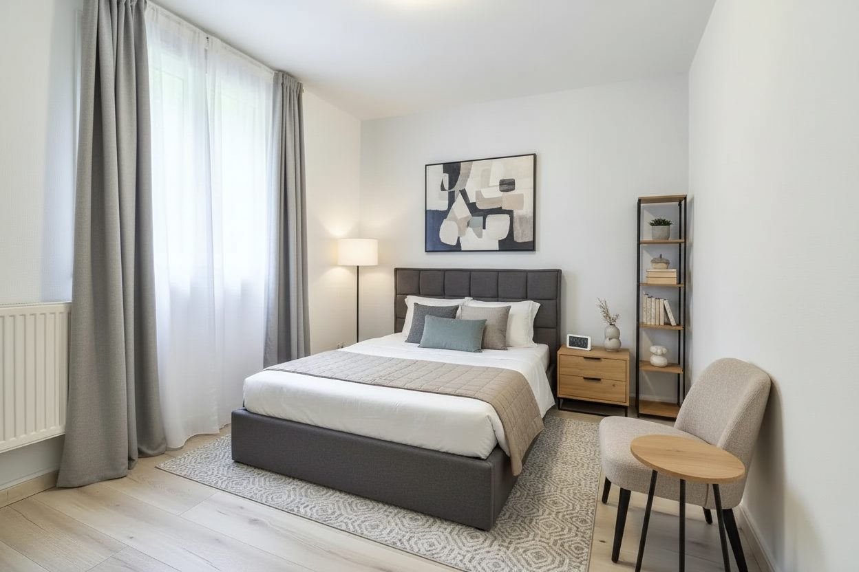 Limite CLERMONT-CHAMALIERES - Quartier BERTHELOT - Appartement T3 entièrement meublé comprenant une entrée avec rangement, un espace bureau avec verrière, une agréable pièce de vie avec cuisine aménagée et équipée ouverte sur salon donnant accès à un balcon.