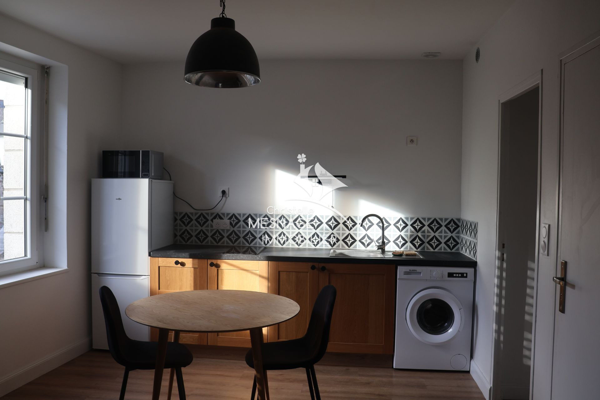 À LOUER CHEZ CHRISTELLE MESNAGE IMMOBILIER : La Ville Es Nonais - <BR>Bel appartement T2 bis MEUBLÉ de 43m² dans le bourg, au 1er étage d'une petite maison de 3 logements offrant : une cuisine équipée ouverte sur le séjour, une chambre, un bureau, u...