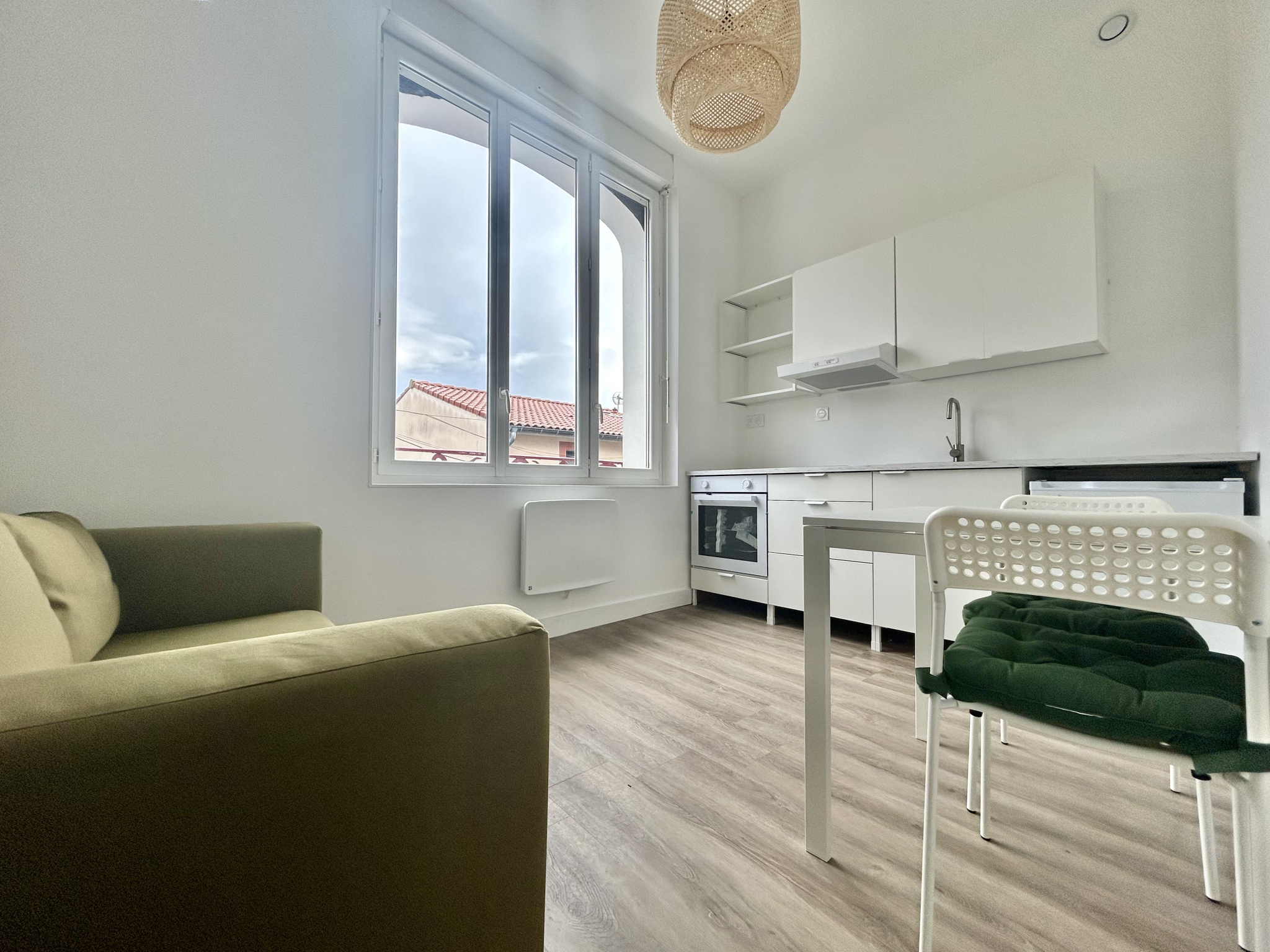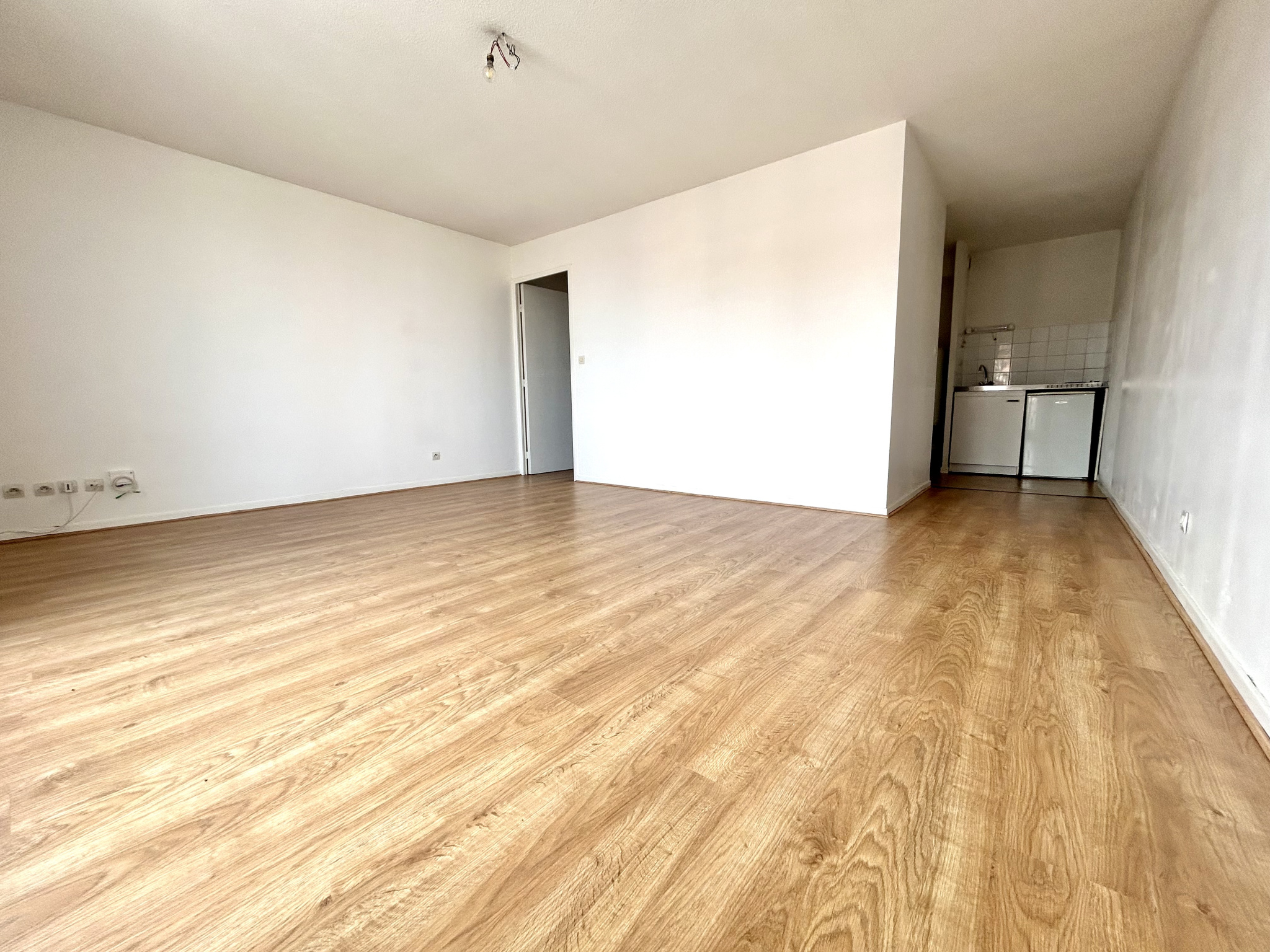 Toulouse, quartier Jolimont, proche de commerces divers ( 5 min à pied d'une superette ), 100 m à pied de la station de métro Joliment ( ligne A ), proche de la médiathèque, au 5ième et dernier étage d'une résidence sécurisée, T1 bis de 33 m2 très lu...