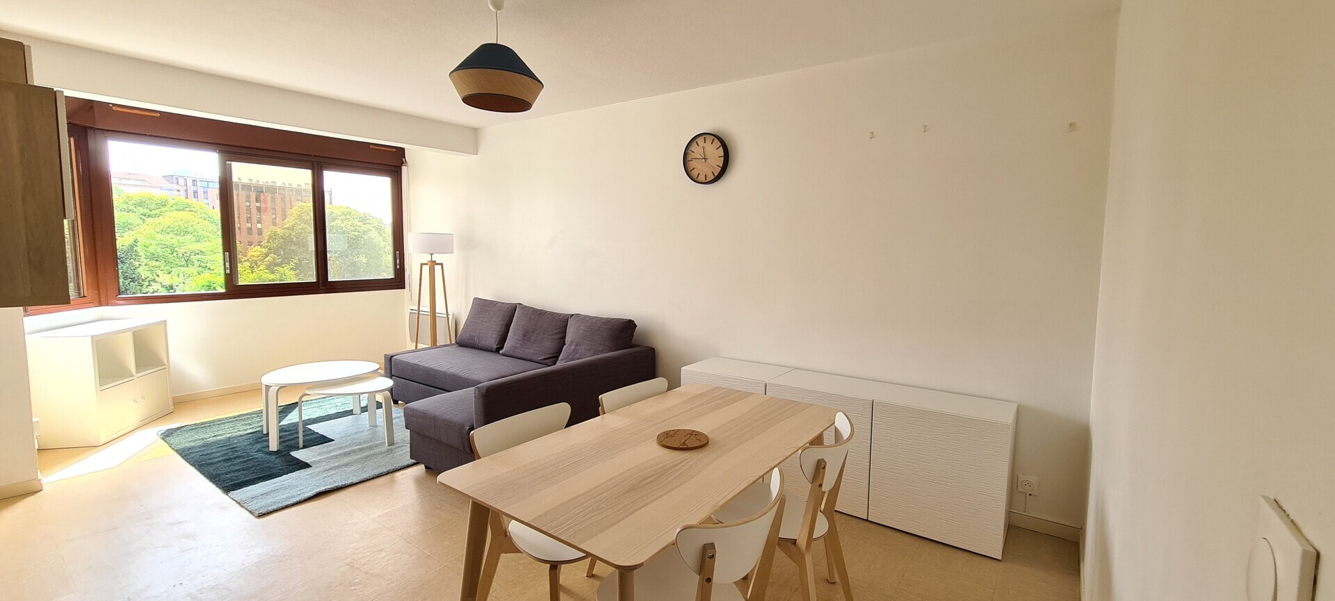 Centre-ville de Toulouse quartier Compans-Cafarelli-Allées de Barcelone, près de la Manufacture des Tabacs, proche du métro ligne B (15 mn) et de tous commerces, T1 meublé avec agréable vue sur le Canal de Brienne, comprenant une entrée avec placard, une cuisi...