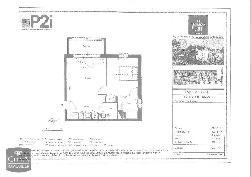 À louer : venez découvrir cet appartement T2 de 43,15 m², dans la petite ville du TAILLAN MEDOC (33320).